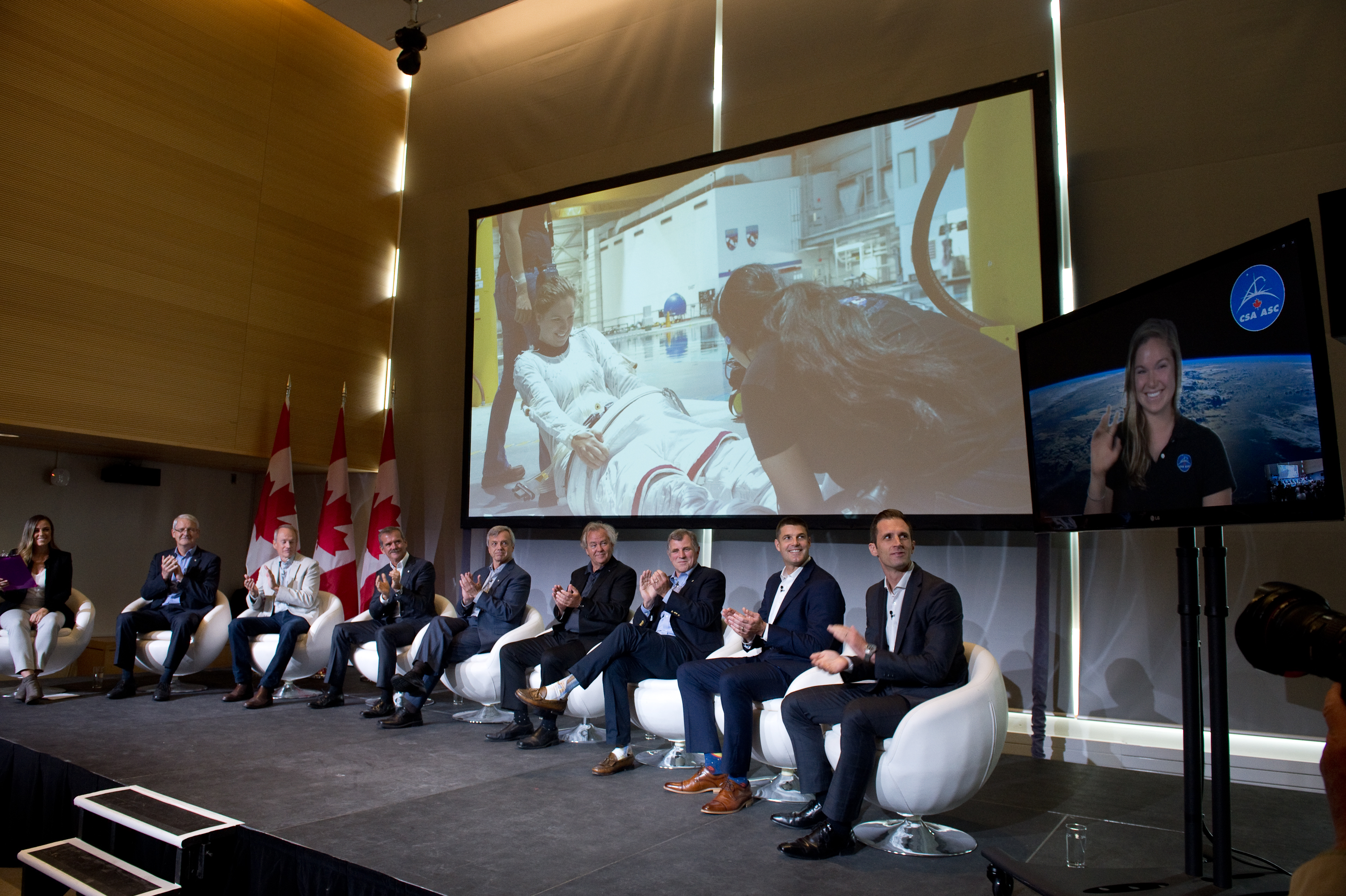 On September 21, 2018, nine Canadian astronauts took part in a unique panel discussion in front of university students and the general public. The conversation, moderated by Amber Mac, centred around space exploration and its future. (Credit: Canadian Space Agency)