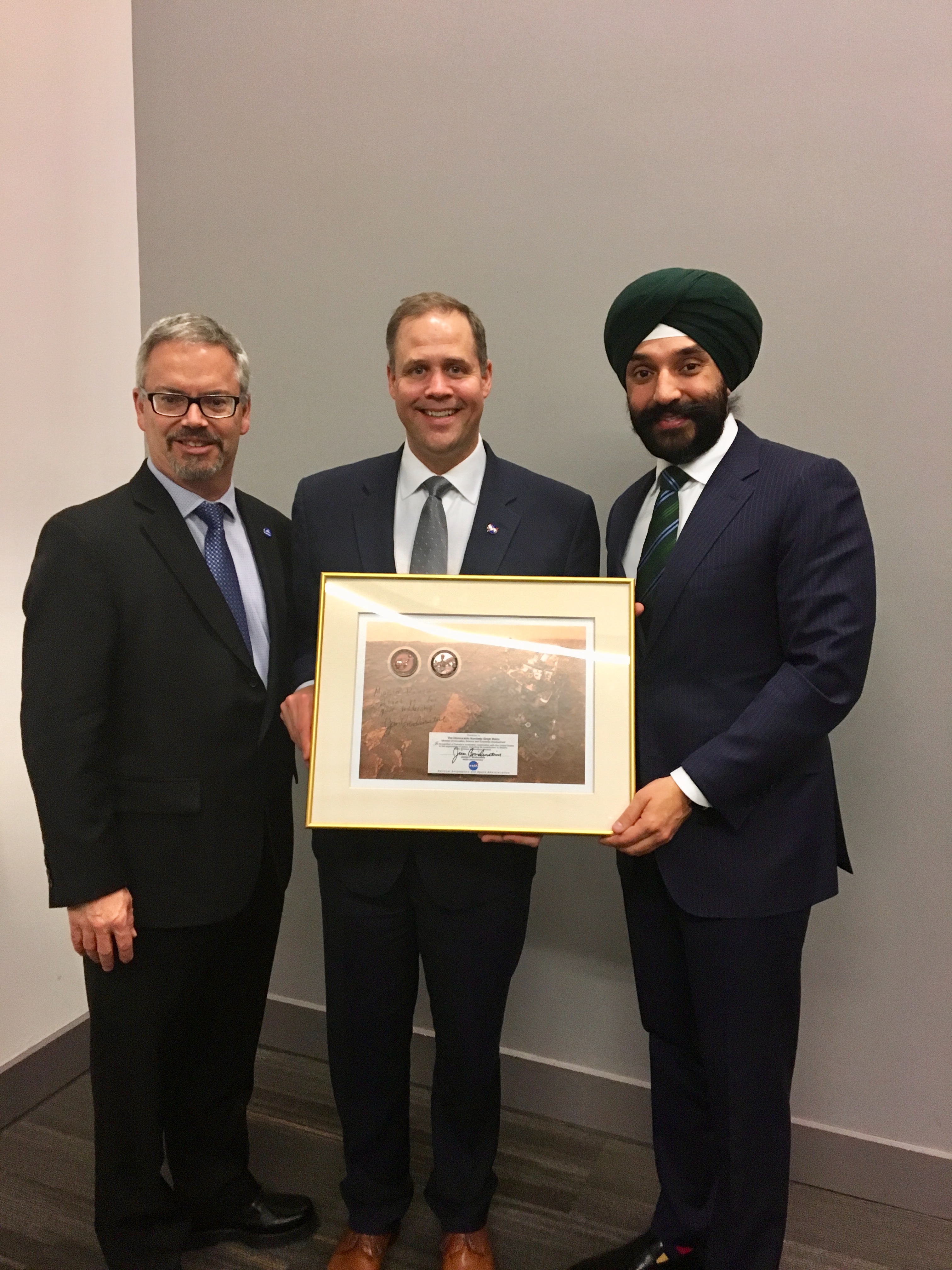 Meeting between CSA President, NASA administrator and the Honorable Navdeep Singh Bains