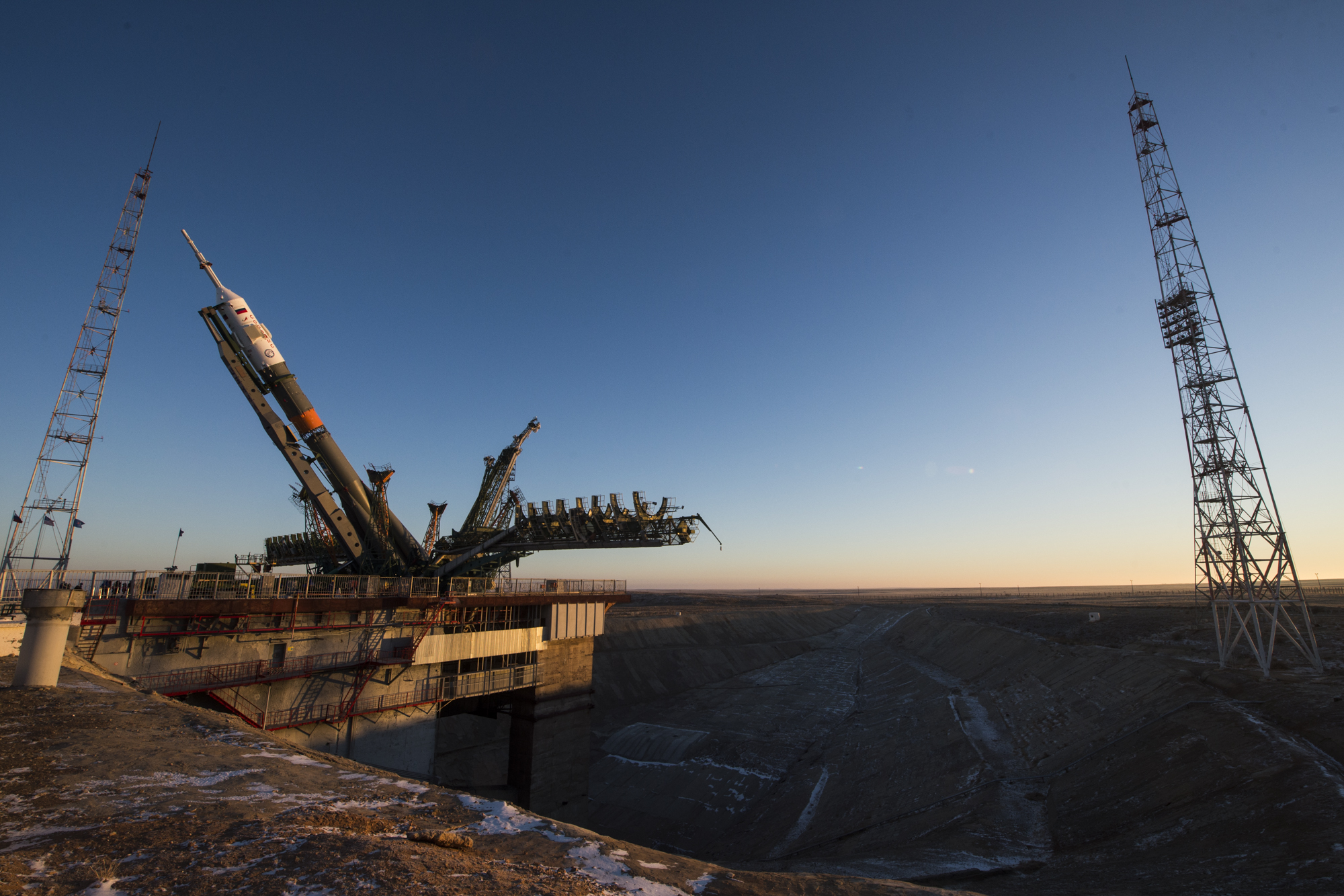 2018-12-01 – In preparation for the December 3 launch, the Soyuz spacecraft is rolled out to the launch pad at the Baikonur Cosmodrome where it is raised into a vertical position.