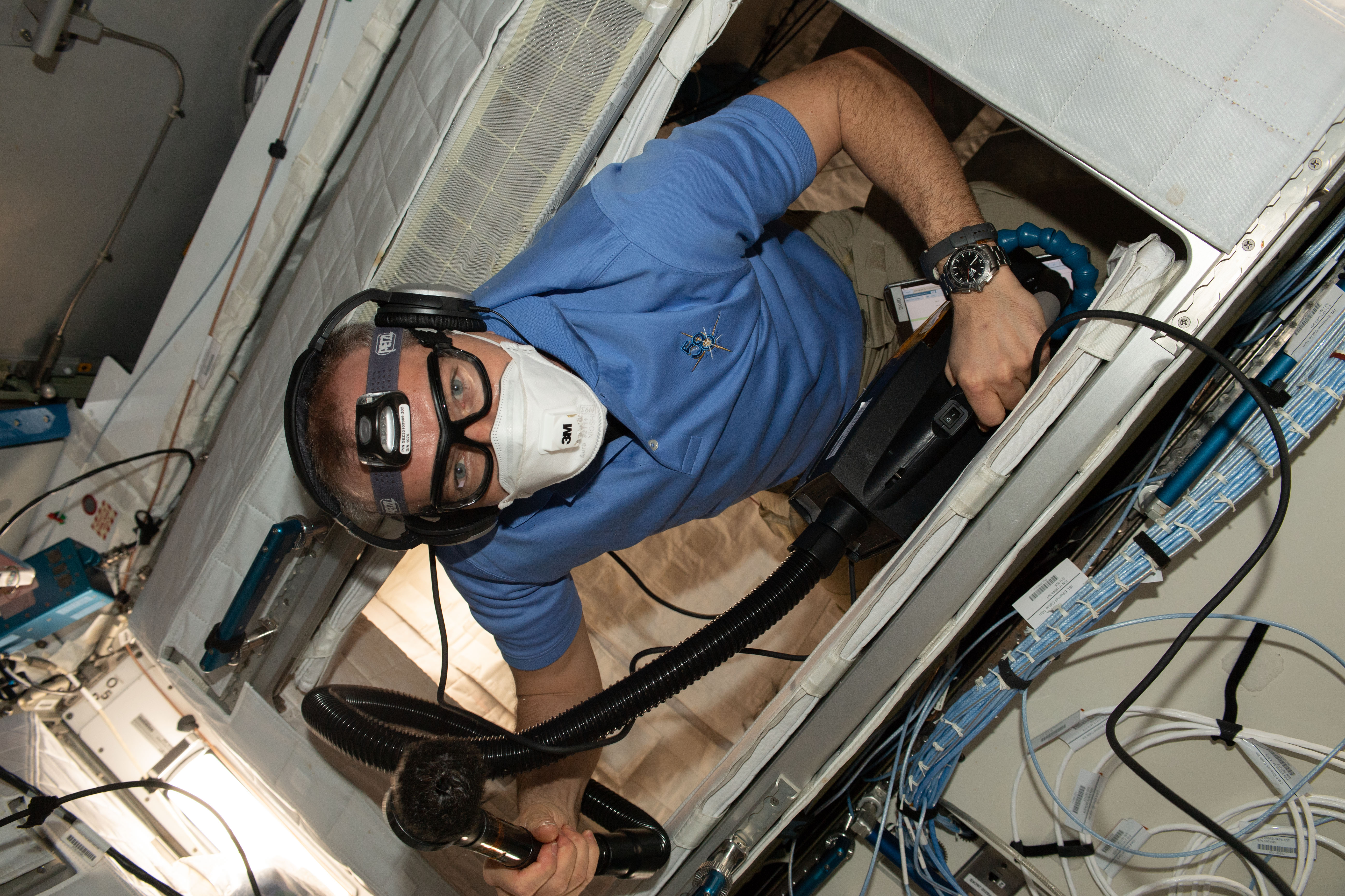 2019-01-07 - Canadian Space Agency astronaut David Saint-Jacques takes care of household chores aboard the ISS. (Credit: CSA/NASA)