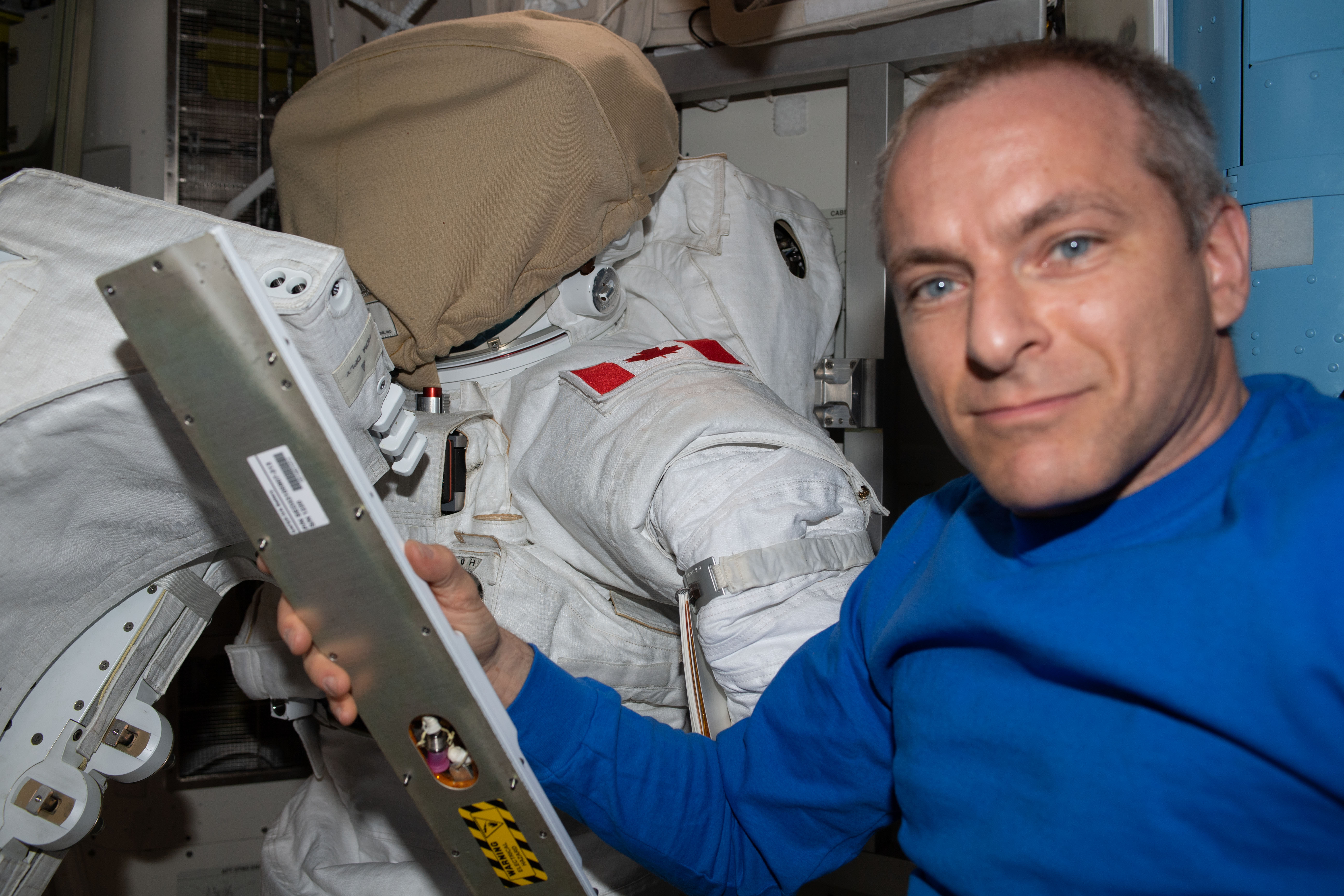 2019-01-07 - Canadian Space Agency astronaut David Saint-Jacques is working in the International Space Station airlock. (Credit: CSA/NASA)