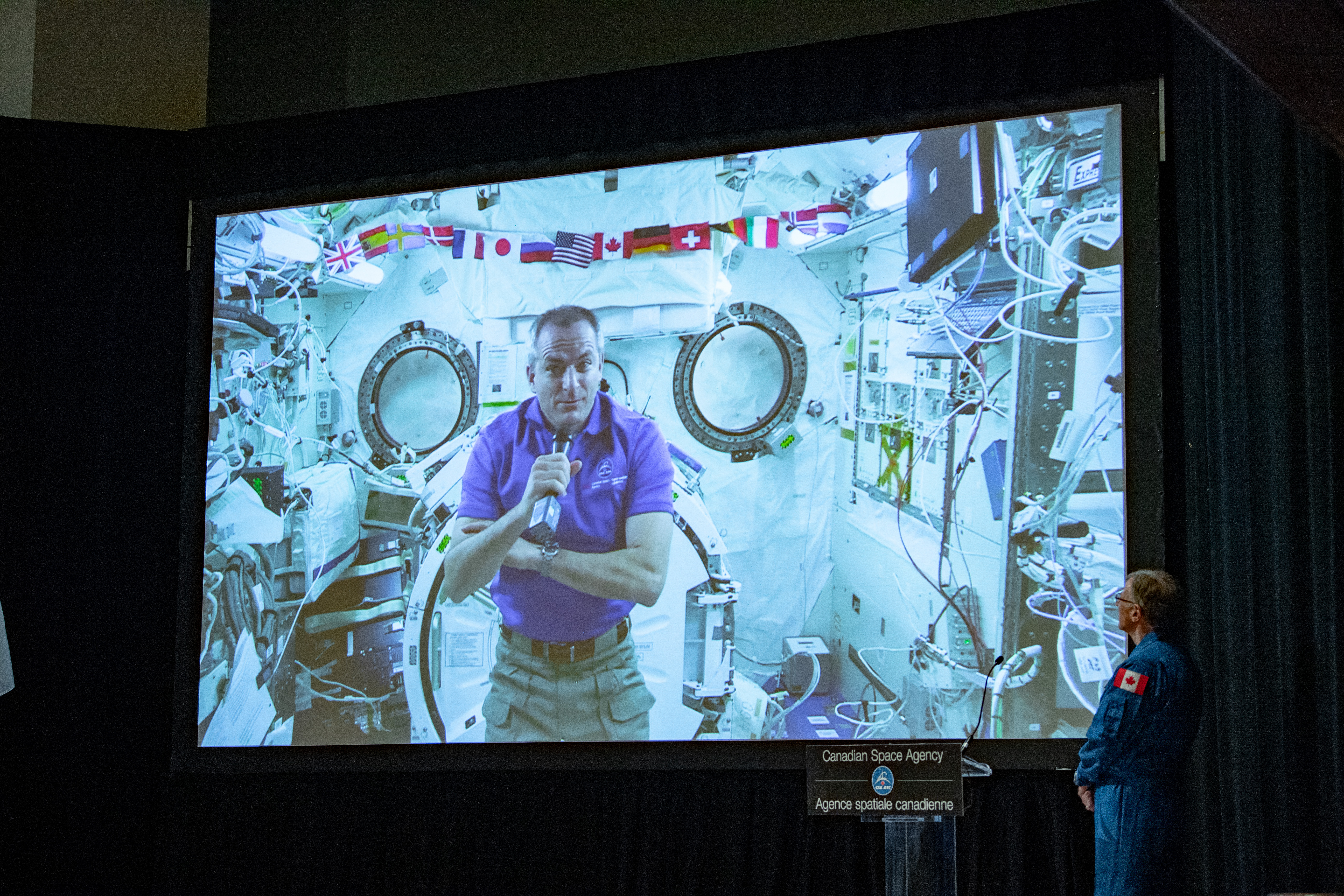 2019-01-10 - Live from the International Space Station, Canadian Space Agency astronaut David Saint-Jacques opened Spectrum, a science exposition organized by the students of the University of Saskatchewan.