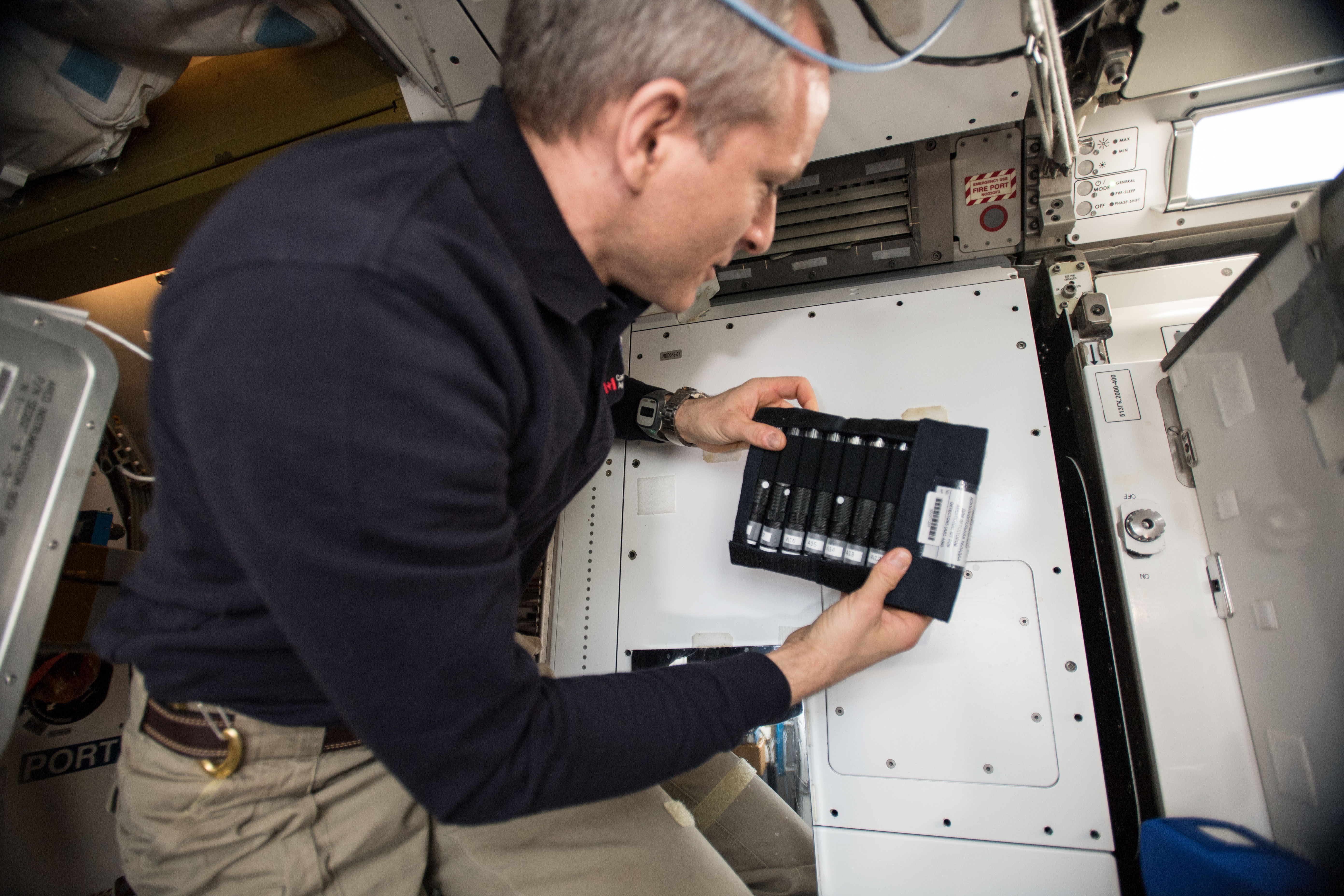 2019-01-15 - David Saint-Jacques places bubble monitors in various locations around the International Space Station for the Canadian Radi-N2 experiment, which aims to measure the amount of neutron radiation received by ISS crew. (Credit: CSA/NASA)