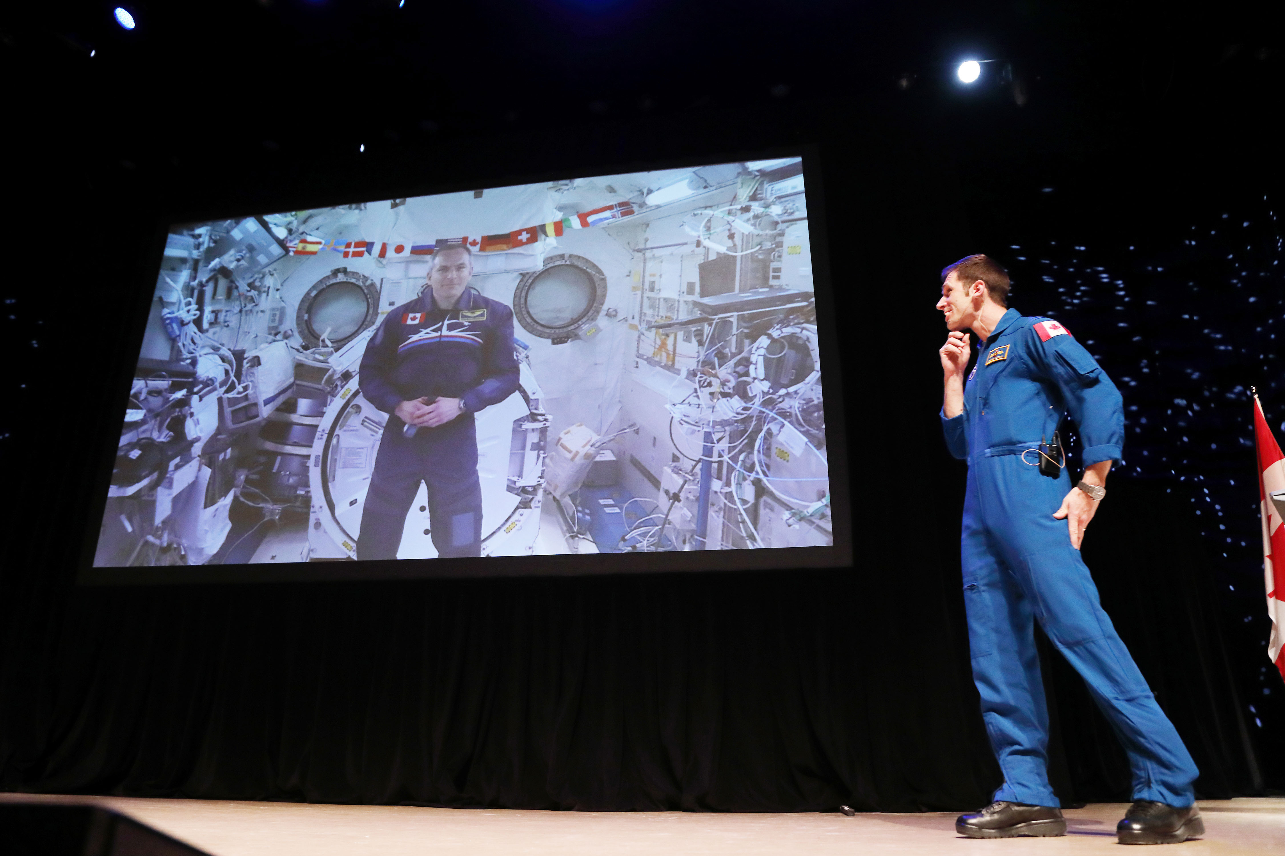 2019-03-04 - Live from the International Space Station, Canadian astronaut David Saint-Jacques answers questions from high school and Dalhousie University students in Halifax, Nova Scotia. (Credit: Canadian Space Agency/Chris Hadfield)