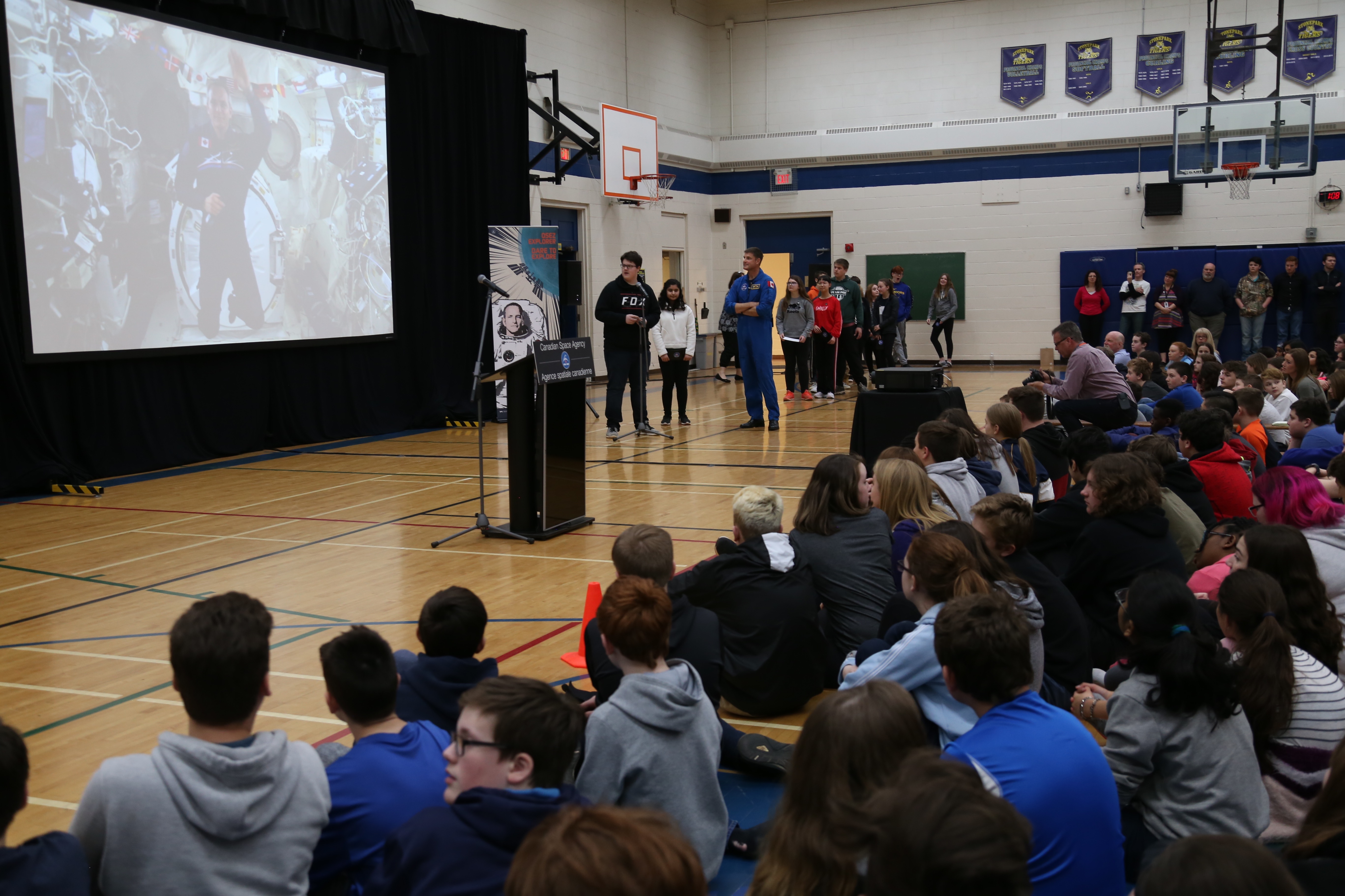 2019-04-26 - CSA astronaut David Saint-Jacques beams into Prince Edward Island live from space! He speaks with 800 students at Stonepark Intermediate School about the environment and life in space. Stonepark won our Exploring Earth contest! (Credit: CSA/NASA)