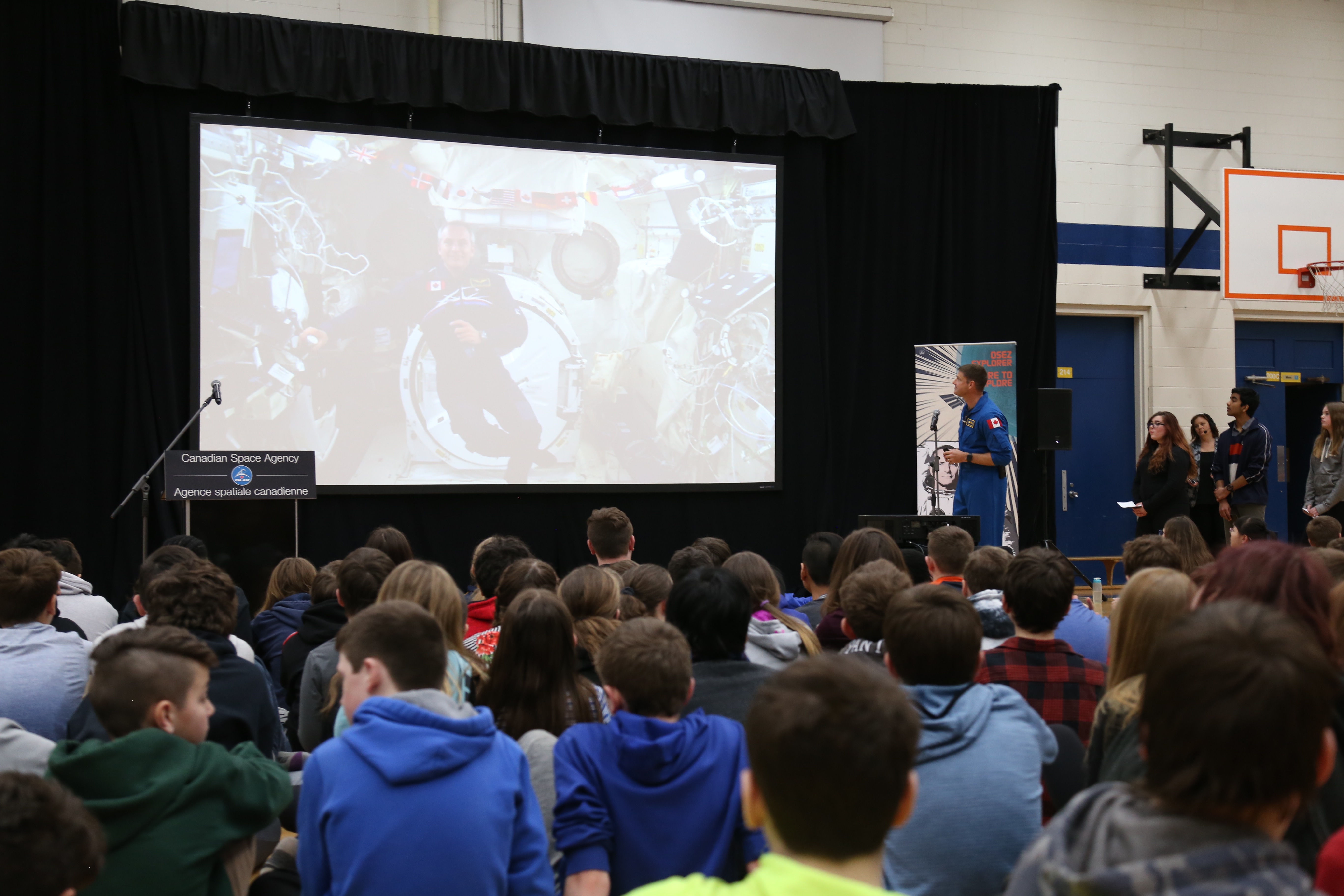 2019-04-26 - CSA astronaut David Saint-Jacques beams into Prince Edward Island live from space! He speaks with 800 students at Stonepark Intermediate School about the environment and life in space. Stonepark won our Exploring Earth contest! (Credit: CSA/NASA)