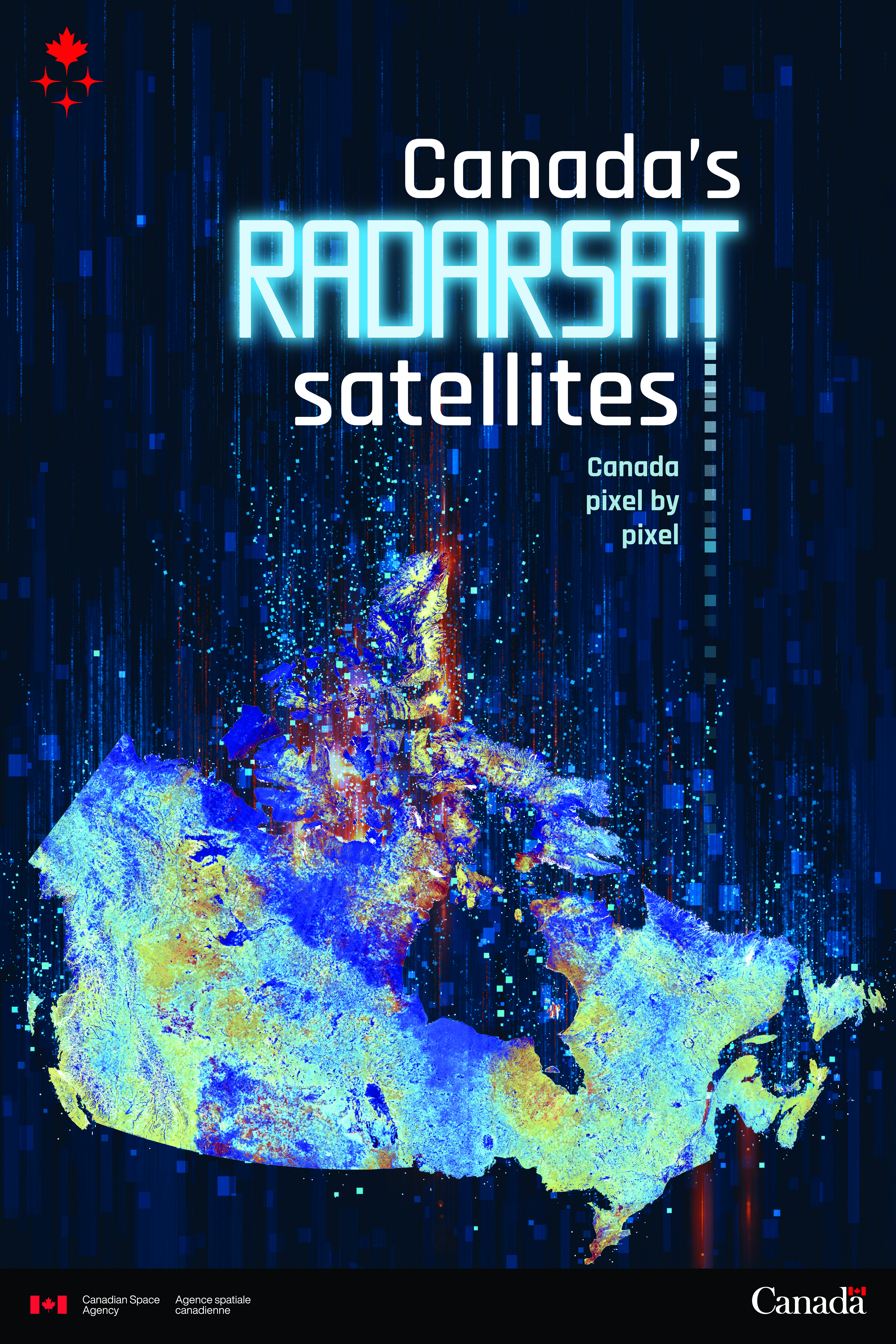 This poster, featuring a mosaic of Canada composed of RADARSAT-2 images, was designed to celebrate Canada's RADARSAT satellites ahead of the launch of the RADARSAT Constellation Mission (RMC). The RCM is the evolution of the RADARSAT Program. It consists of three identical Earth observation satellites that will provide daily revisits (on average) of Canada's vast territory and maritime approaches, including the Arctic up to 4 times a day, as well as daily access to any point of 90% of the world's surface. (Credit: Canadian Space Agency)