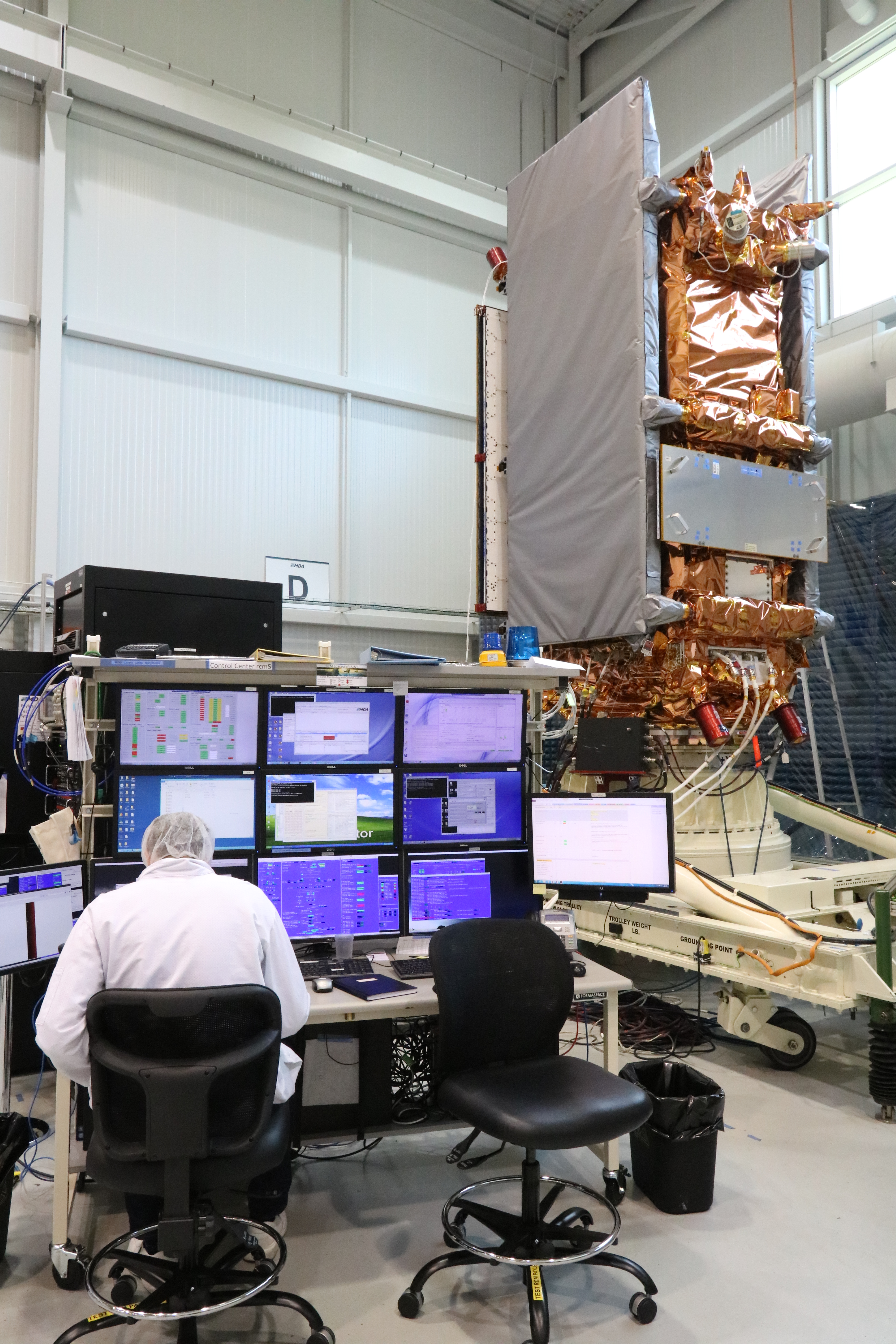 2018-07-04 – An RCM spacecraft undergoing electronic testing at MDA’s facilities in the Montreal area. The RADARSAT Constellation is Canada’s new generation of Earth observation satellites. The three identical satellites work together to bring solutions to key challenges for Canadians. (Credit: Canadian Space Agency)