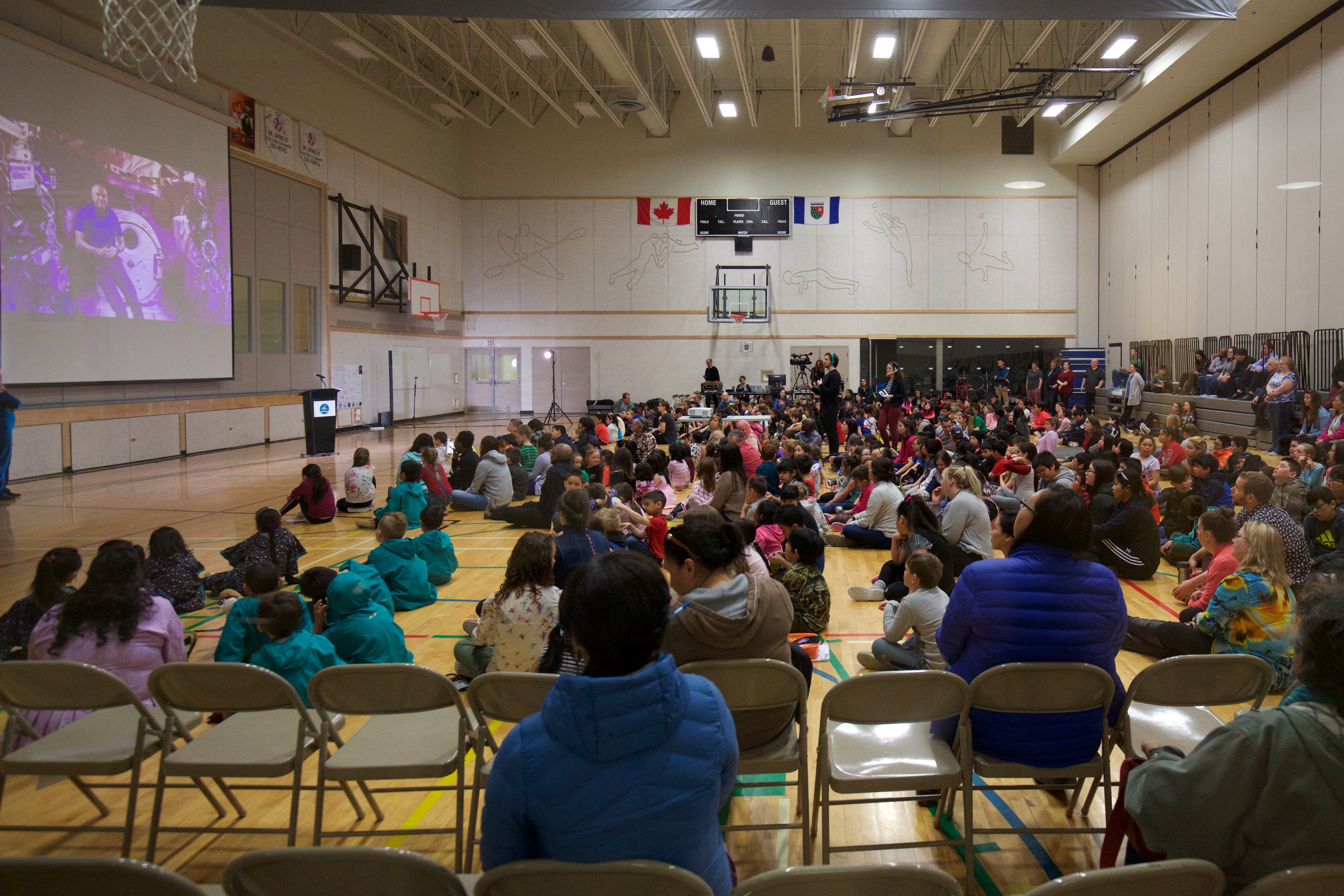 David Saint-Jacques talks with winners of the "Bring Space to your School!" contest