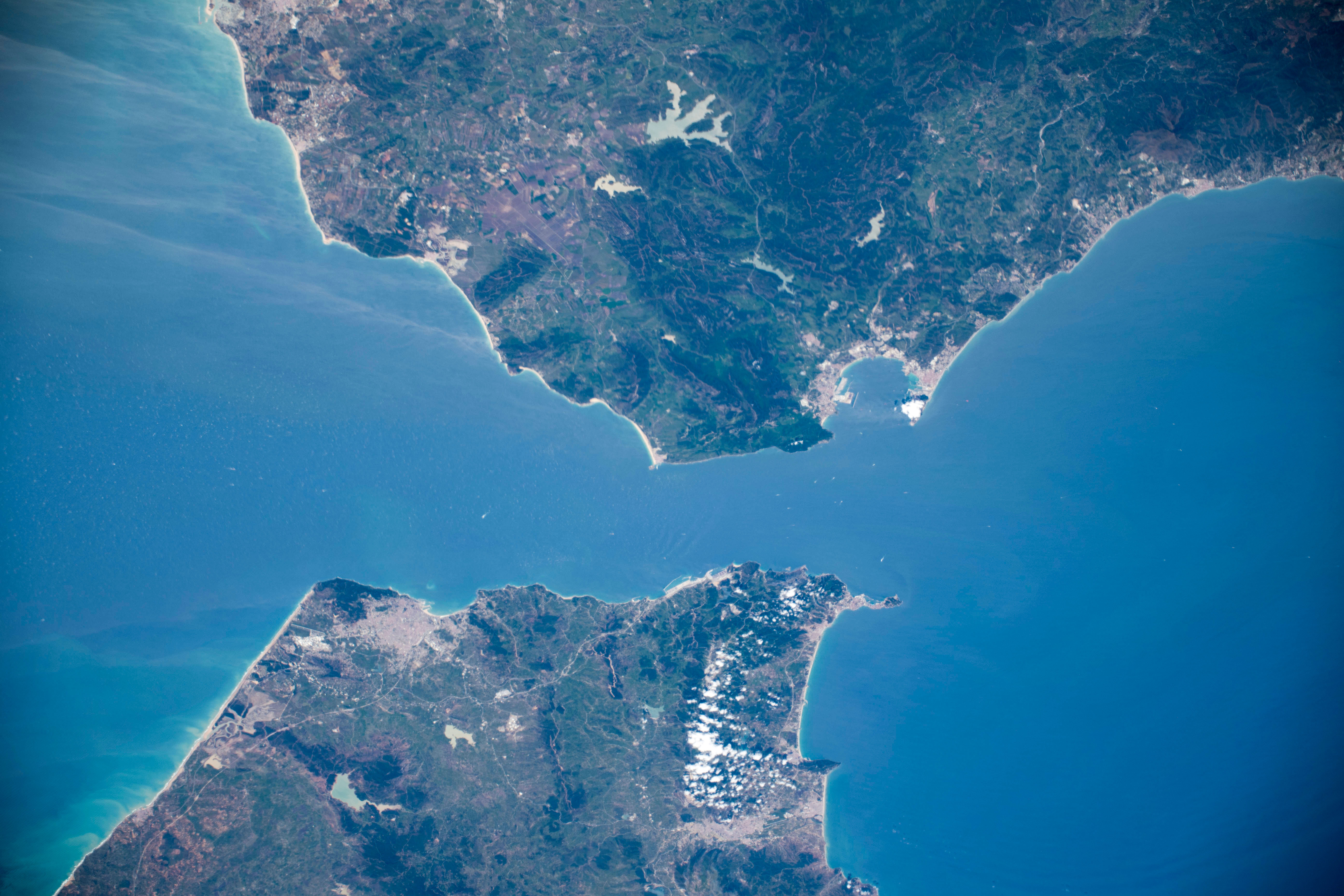 2019-04-27 – Picture of the Strait of Gibraltar, taken by CSA astronaut David Saint-Jacques during his space mission. (Credit: CSA/NASA)