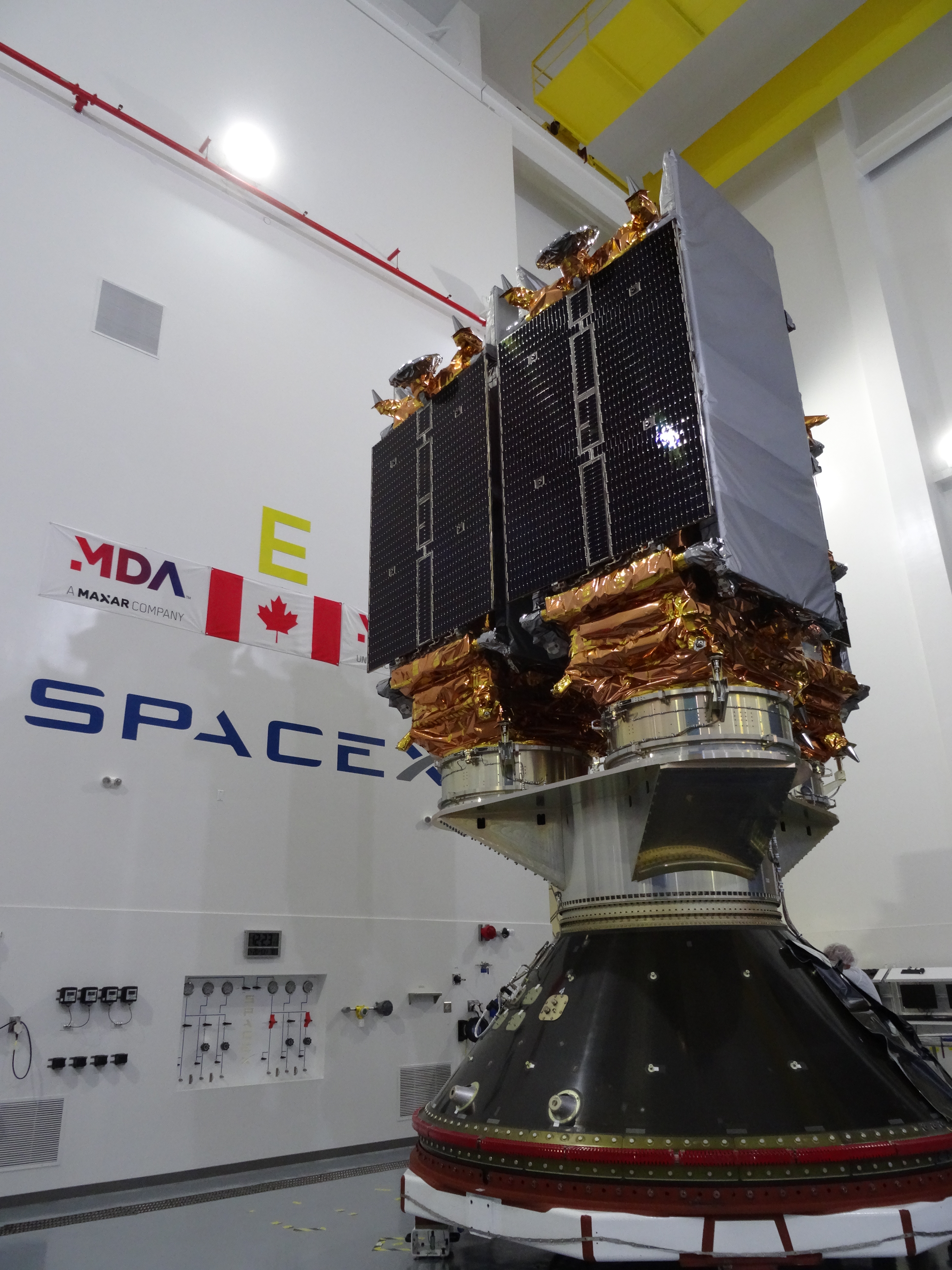 2019-05-21 - The three RADARSAT Constellation Mission (RCM) satellites were installed in a special instrument designed to deploy each of them. This took place at the SpaceX facilities at the Vandenberg Air Force Base ahead of their launch. (Credits: Canadian Space Agency, MDA, a Maxar company)