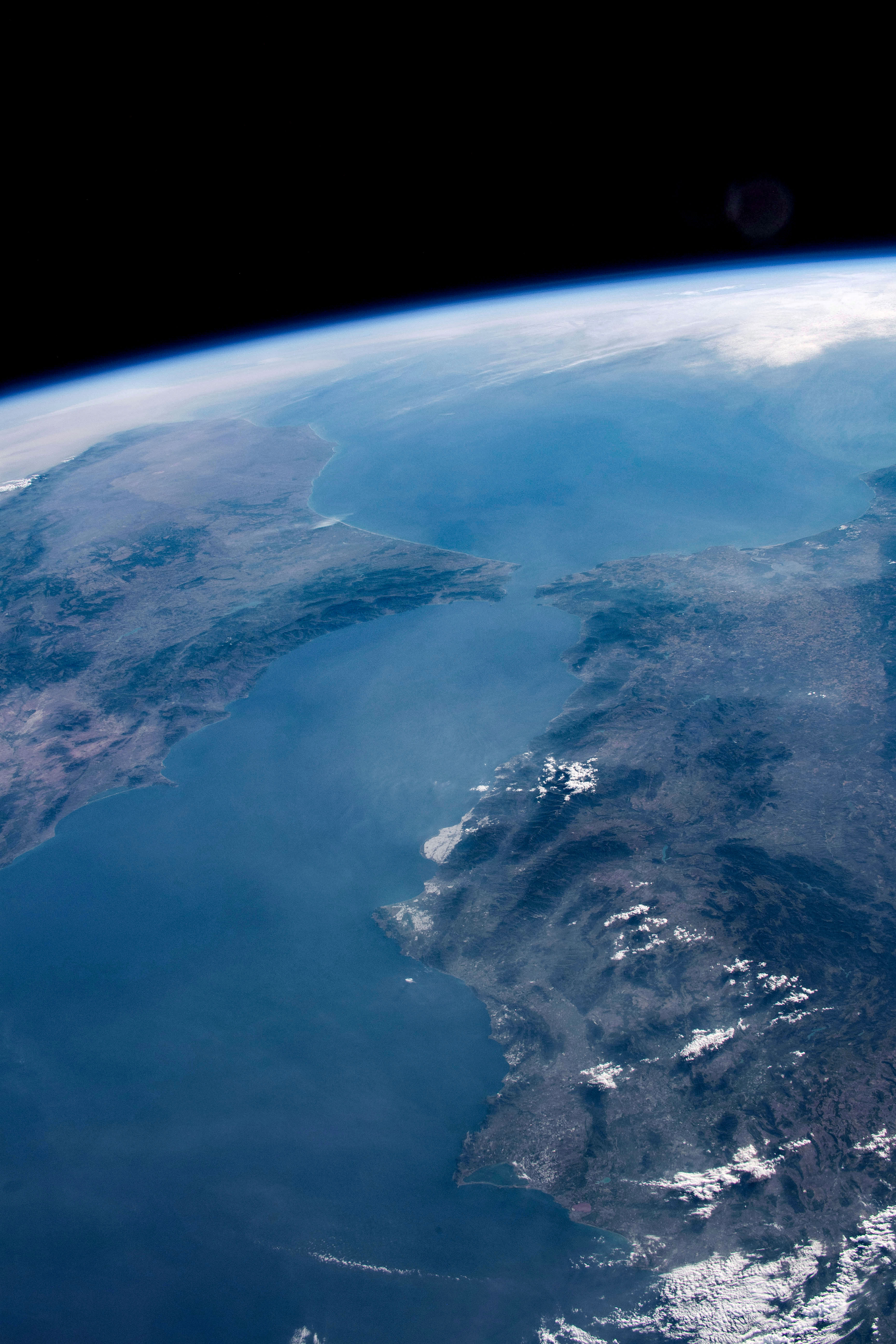 2019-05-26 – Picture of the Strait of Gibraltar, taken by CSA astronaut David Saint-Jacques during his space mission. (Credit: CSA/NASA)