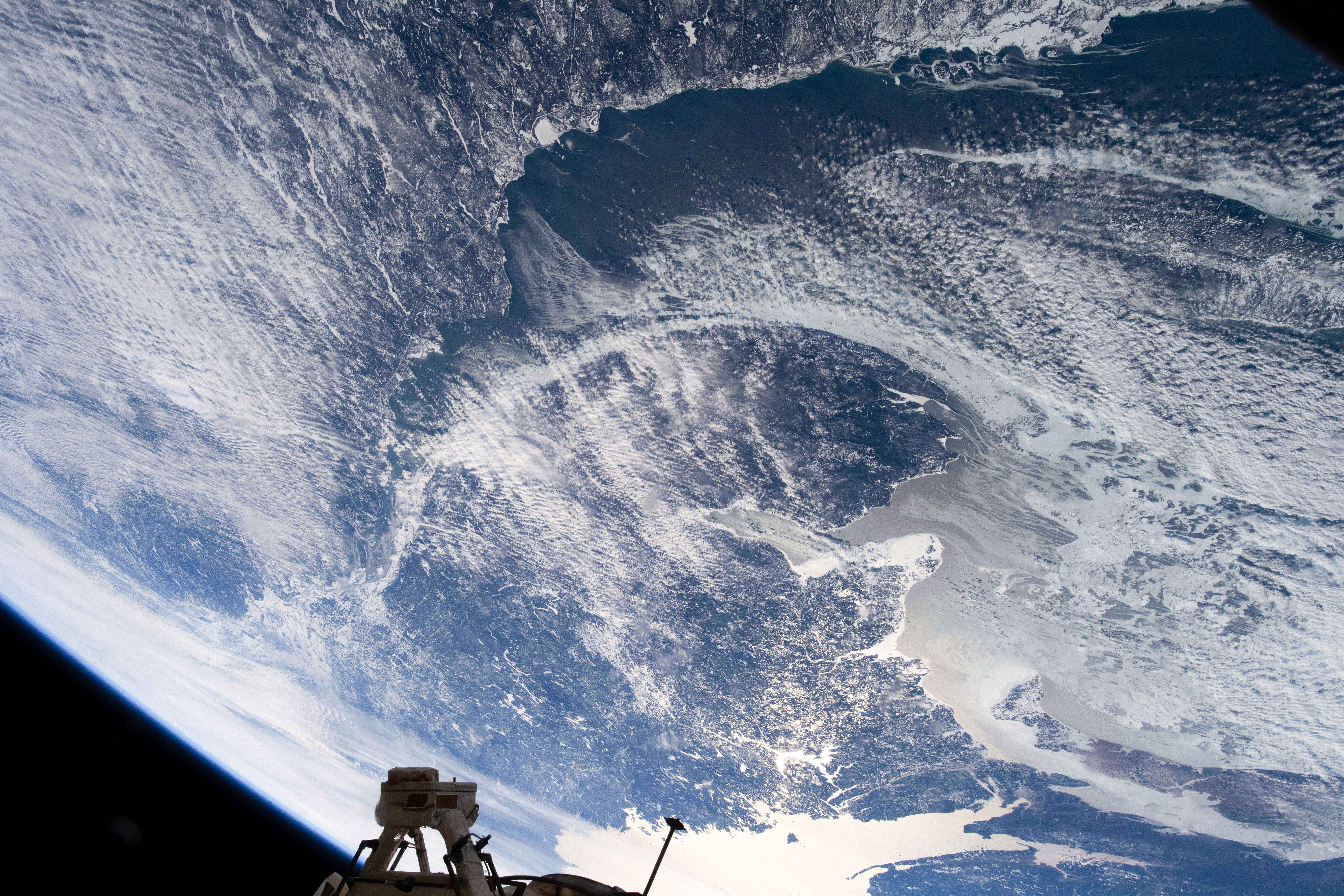 2019-04-28 – Picture of the Gaspé Peninsula, Quebec, taken by CSA astronaut David Saint-Jacques during his space mission. (Credit: CSA/NASA)