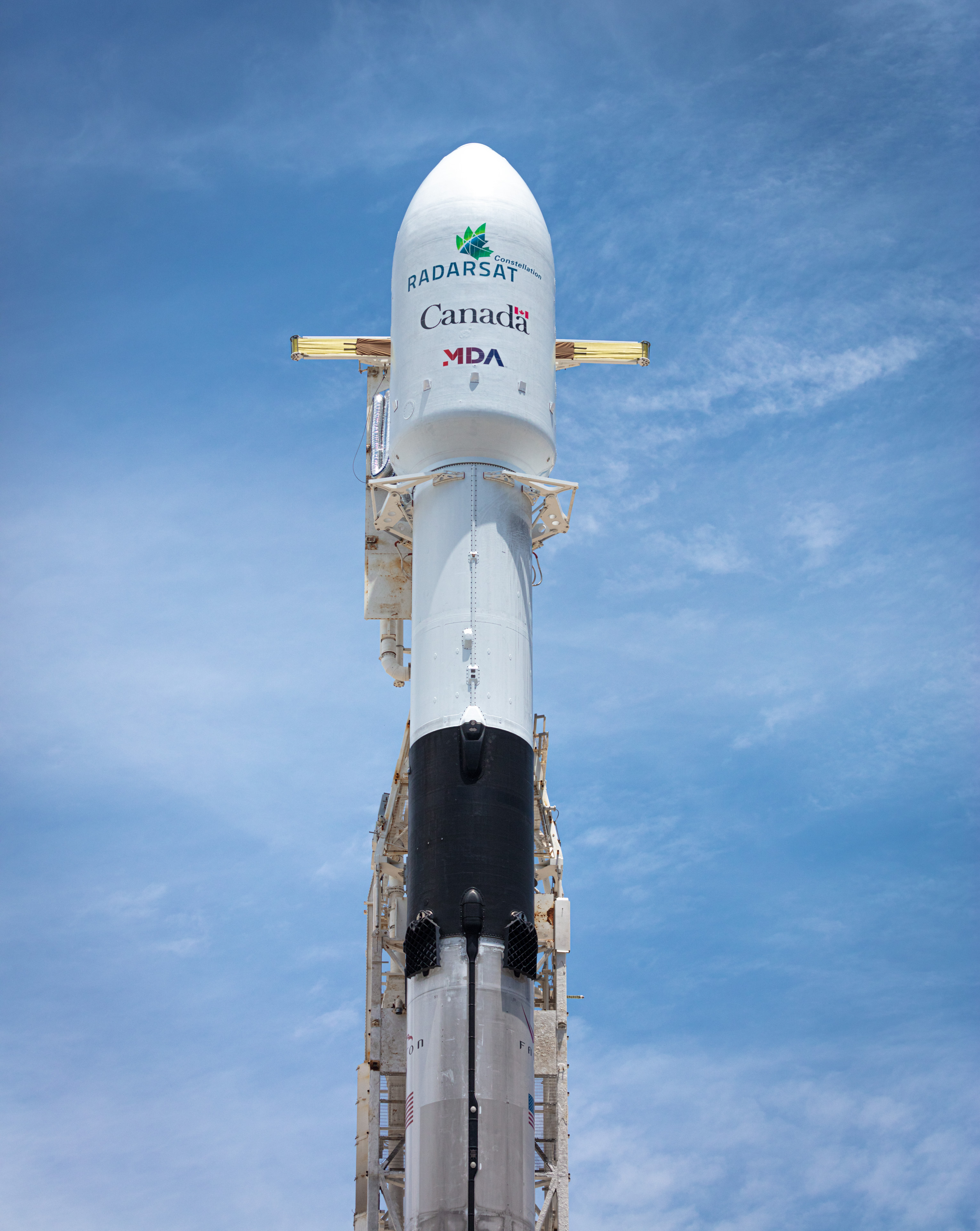 2019-06-11 – Inside the fairing of this SpaceX Falcon 9 rocket are the three RADARSAT Constellation Mission (RCM) satellites, a day before they were launched from Vandenberg Air Force Base, California. The RADARSAT Constellation is Canada’s new generation of Earth observation satellites. The three identical satellites work together to bring solutions to key challenges for Canadians. (Credit: SpaceX)