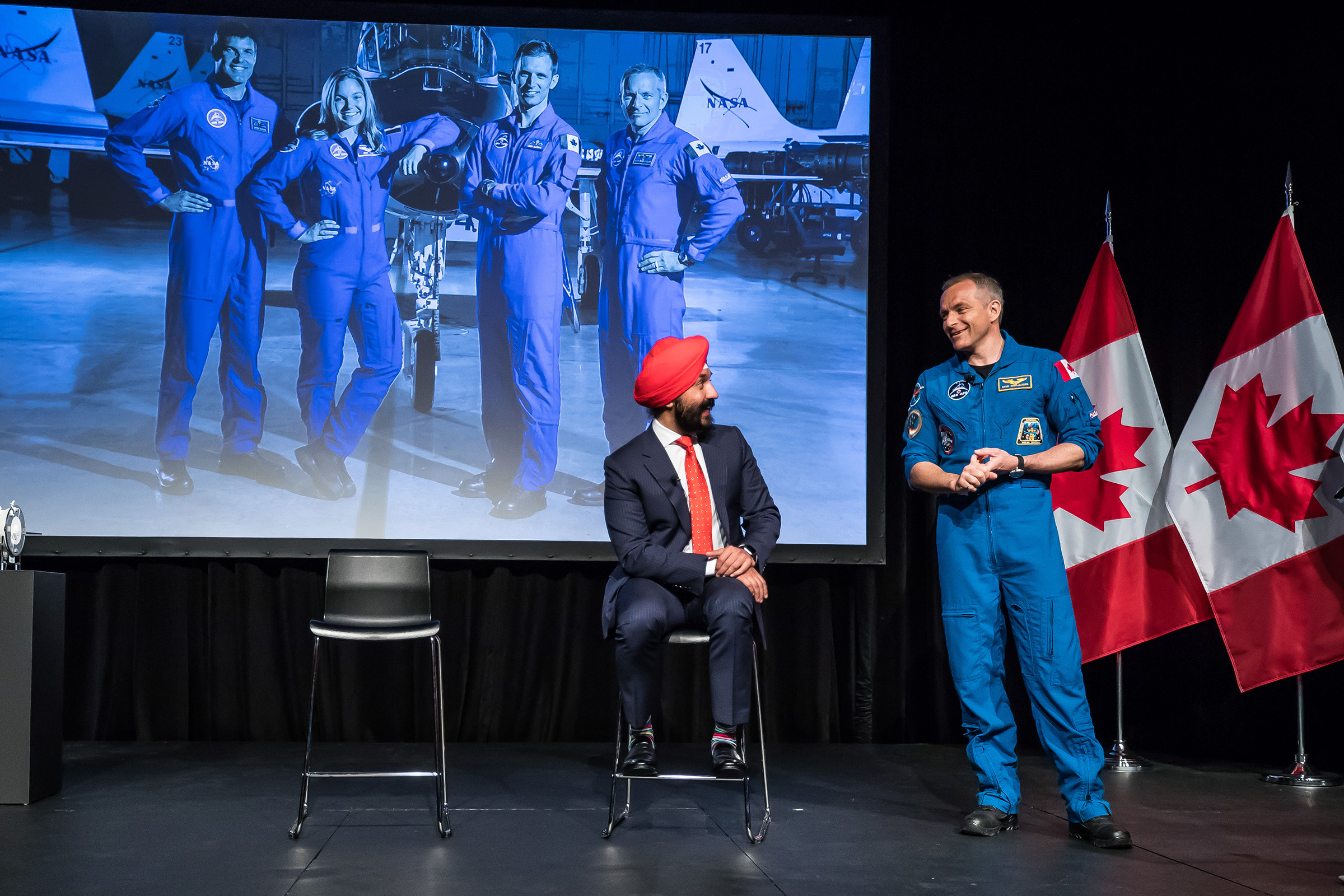 Before an audience of CSA employees and young Canadians, David Saint Jacques talked about his mission and answered questions from young people. (Credit: Canadian Space Agency)