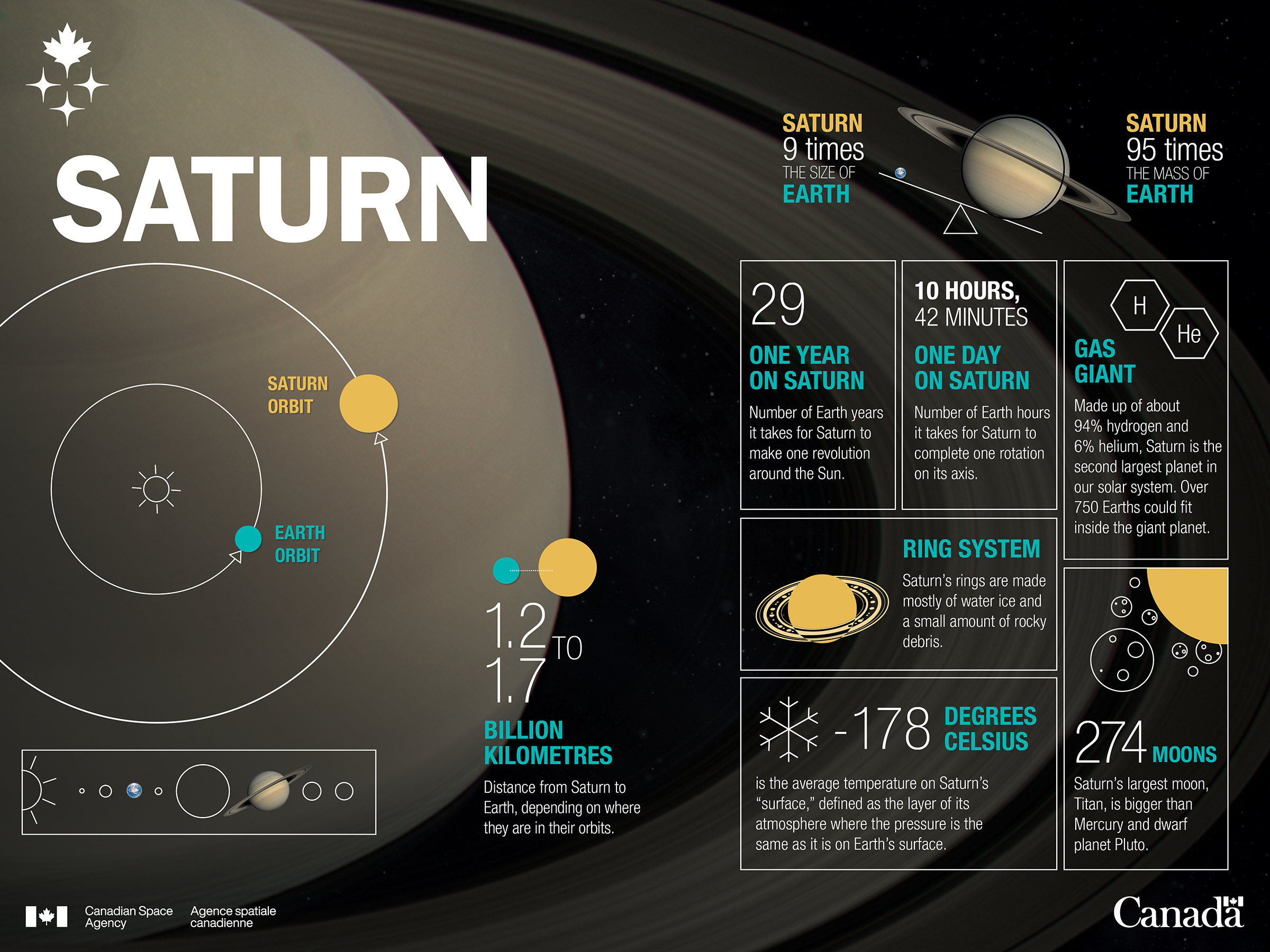 Infographic about Saturn, the second-largest planet in the Solar system. (Credit: Canadian Space Agency)