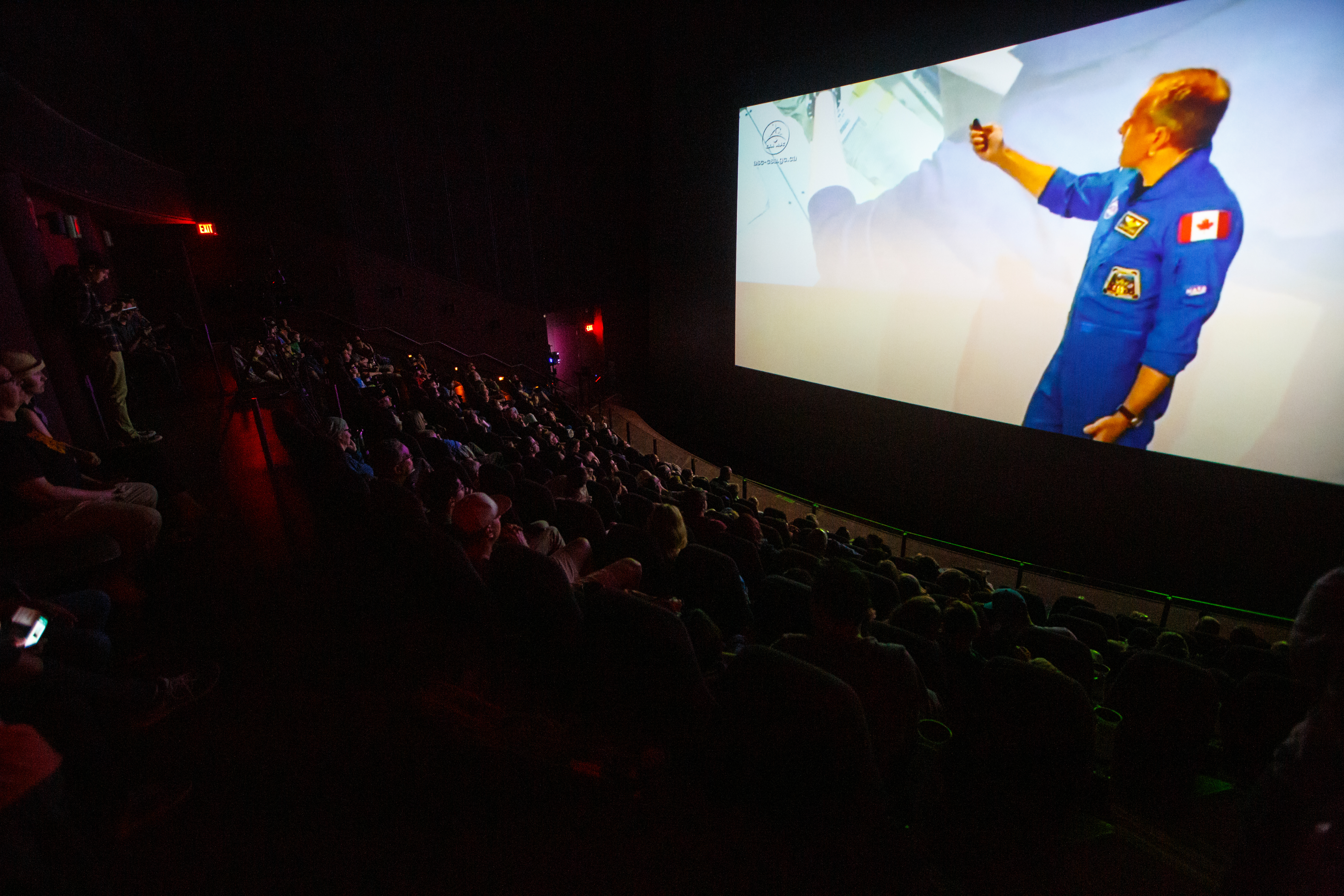 CSA astronaut Dave Williams hosted the local event at the Saskatchewan Science Centre in Regina as David Saint-Jacques and Robert Thirsk connected by video link to discuss the proud history and unfolding future of lunar exploration. (Credit: Canadian Space Agency)
