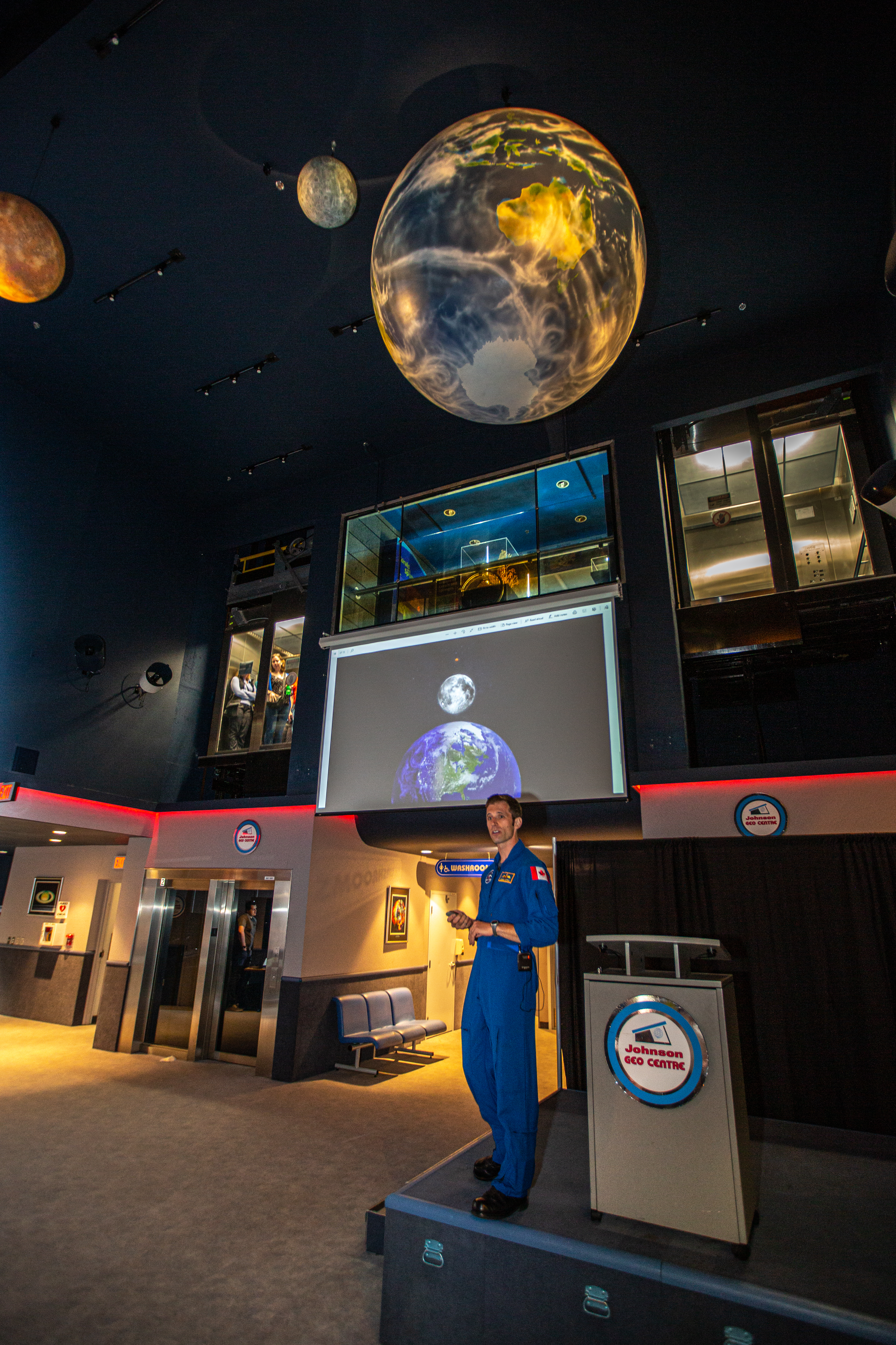 CSA astronaut Joshua Kutryk hosted the local event at the Johnson Geo Centre in St. John's as David Saint-Jacques and Robert Thirsk connected by video link to discuss the proud history and unfolding future of lunar exploration. (Credit: Canadian Space Agency)