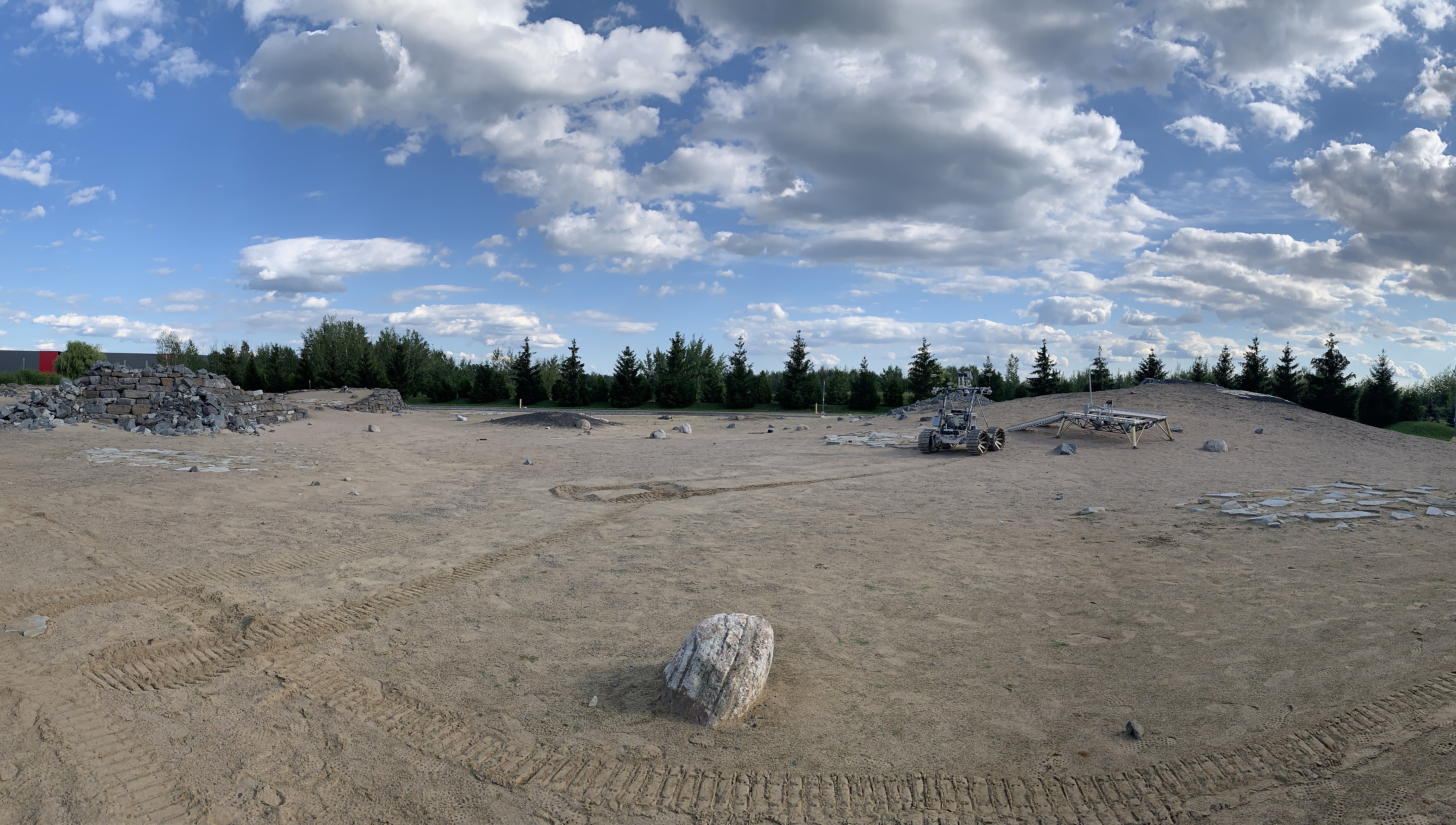 The Juno rover on the terrain simulating the Moon at the CSA's headquarters while being operated by team Bondar on Wednesday. (Credit: Canadian Space Agency)