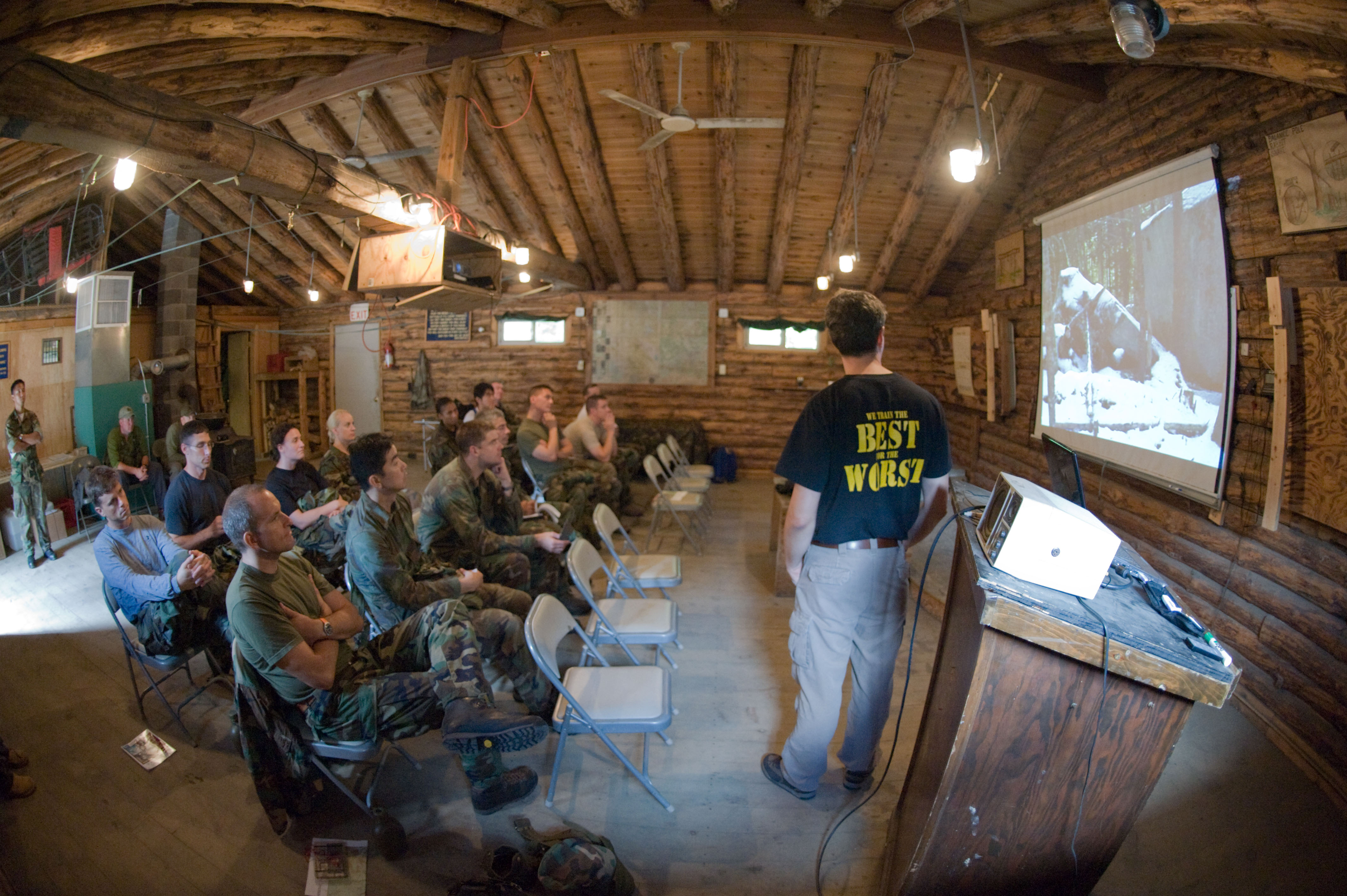 Astronaut trainees are shown at a briefing during a four-day of Land Survival Training at the Naval Air Station in Brunswick, Maine. The 2009 Astronaut Candidate class reported to NASA's Johnson Space Center to begin a two year training program on August 24, 2009. CSA's David Saint-Jacques appears at the forefront in the first row. (Credit: NASA)
