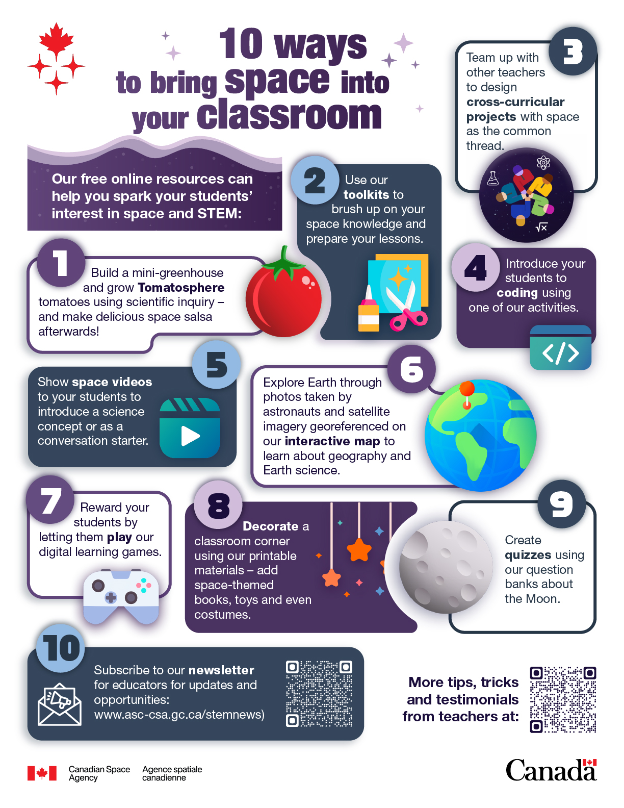 - Team up with other teachers to design cross-curricular projects with space as the common thread.