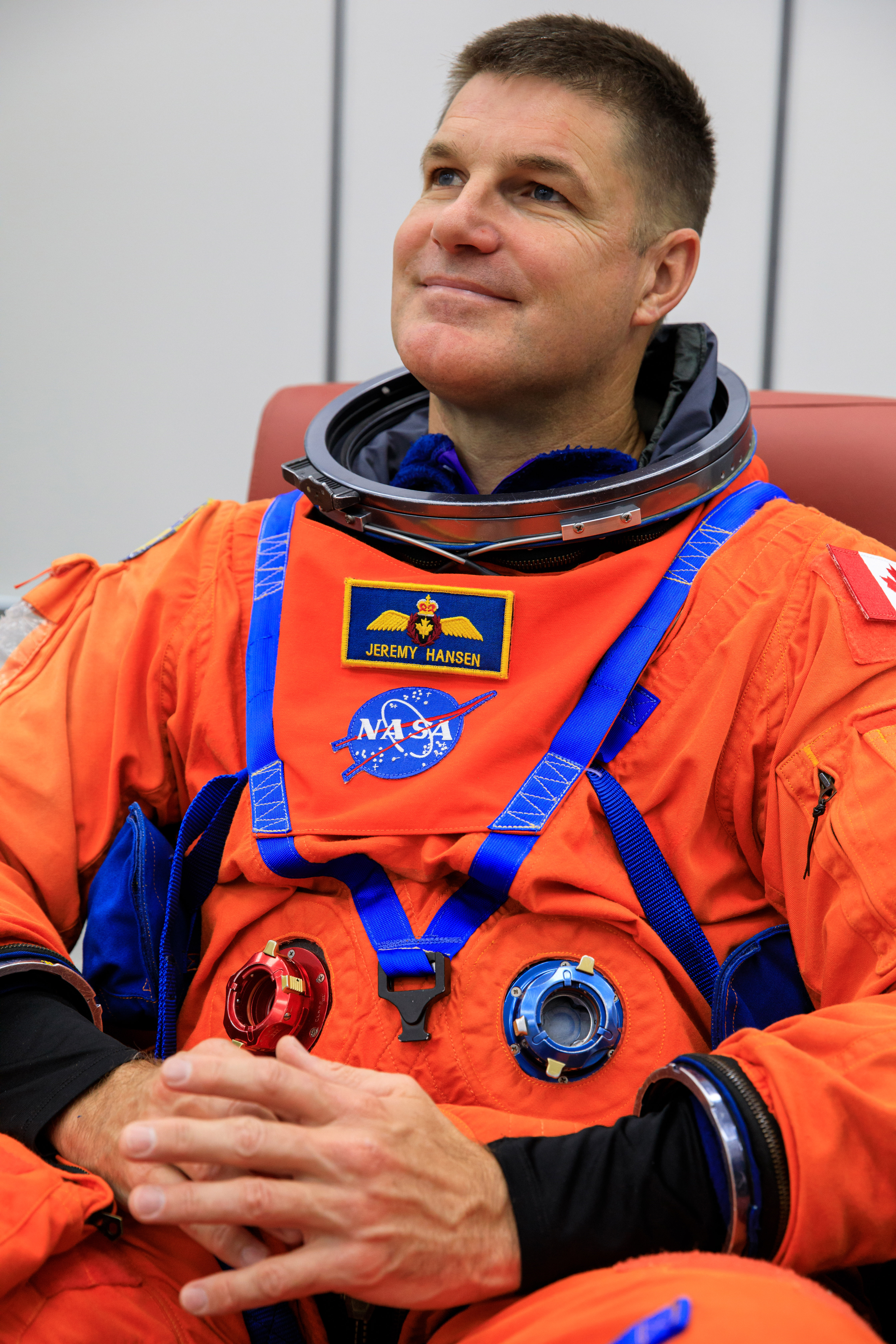 Jeremy Hansen in Orion spacesuit for launch day simulation
