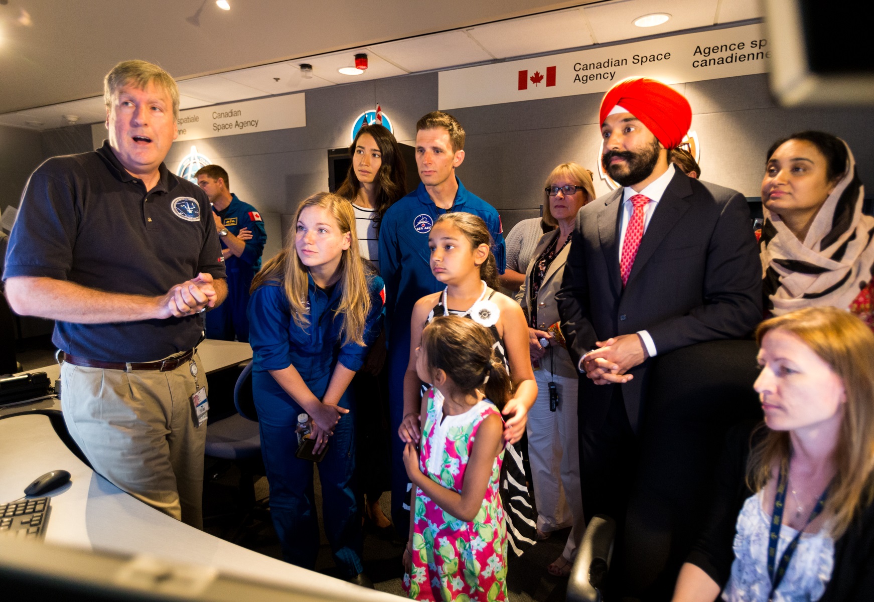 2017-07-04 - Canadian astronauts Jeremy Hansen, Joshua Kutryk and Jenni Sidey tour the Canadian Space Agency with the Honourable Navdeep Bains, Minister of Innovation, Science and Economic Development, and his family. (Credit: Canadian Space Agency)