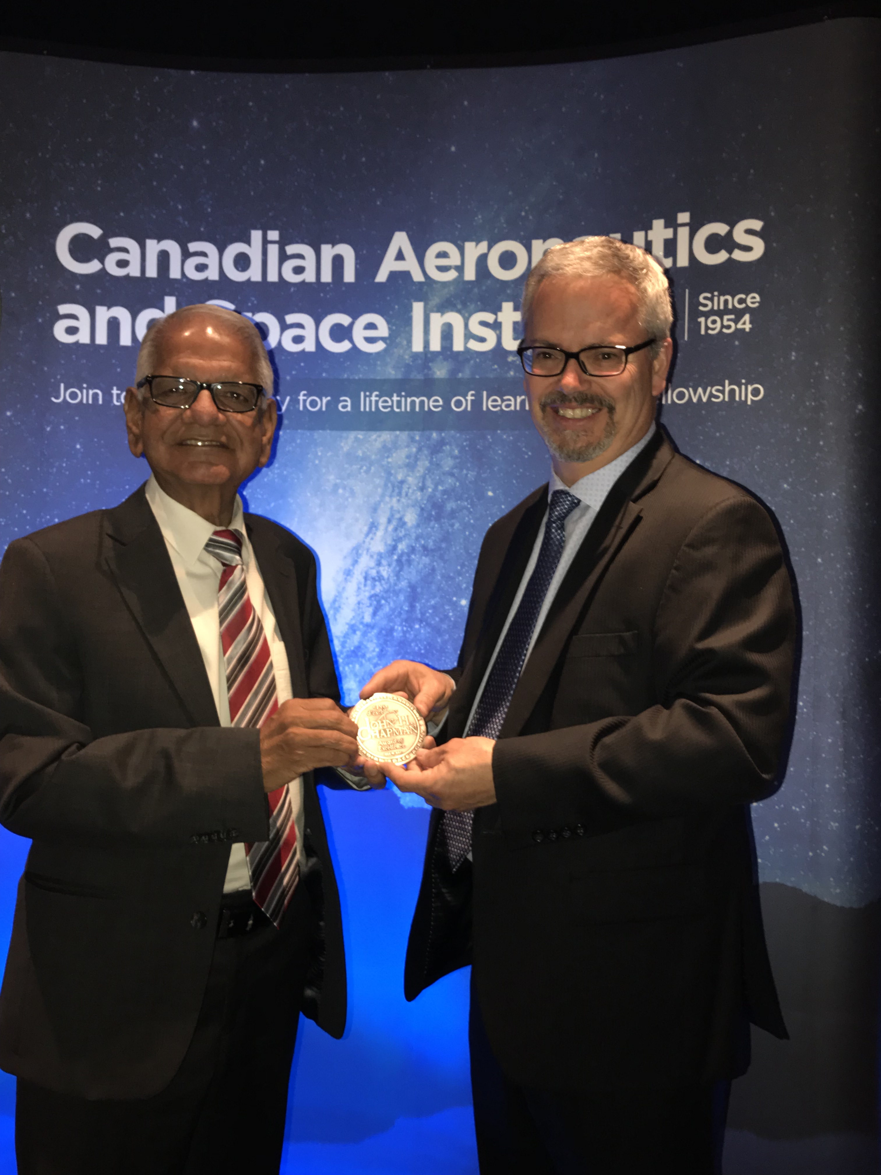 2018-05-18 - In recognition of his exceptional contribution to the Canadian Space Program, Dr. Virendra Jha was presented with the John H. Chapman Award of Excellence by Sylvain Laporte, President of the Canadian Space Agency. (Credit: Canadian Space Agency)