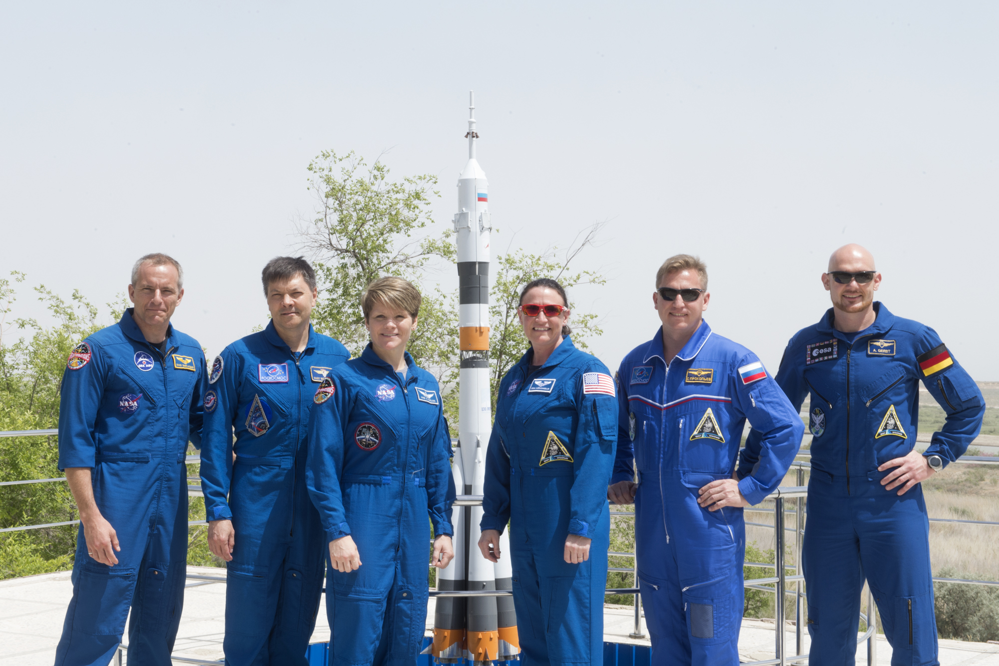 As a member of the backup crew for Expedition 56/57, David Saint-Jacques and his Expedition 58 crewmates, Oleg Kononenko (Roscosmos) and Anne C. McClain (NASA), take part in pre-launch activities with the prime crew in Baikonur, Kazakhstan.