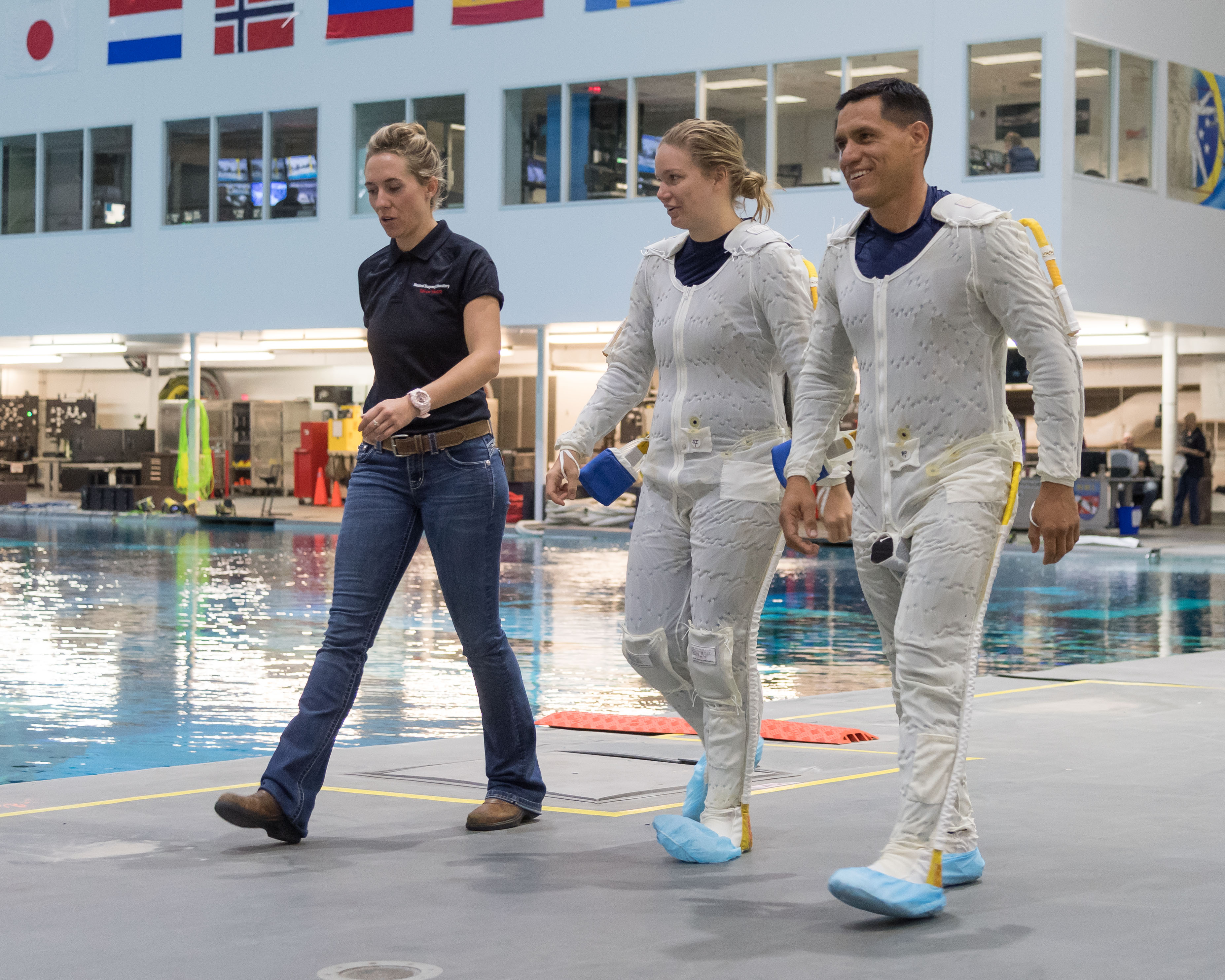 2018-07-19 - Jenni Sidey and Frank Rubio NASA astronaut train in NASA’s Neutral Buoyancy Laboratory (NBL) in Houston.