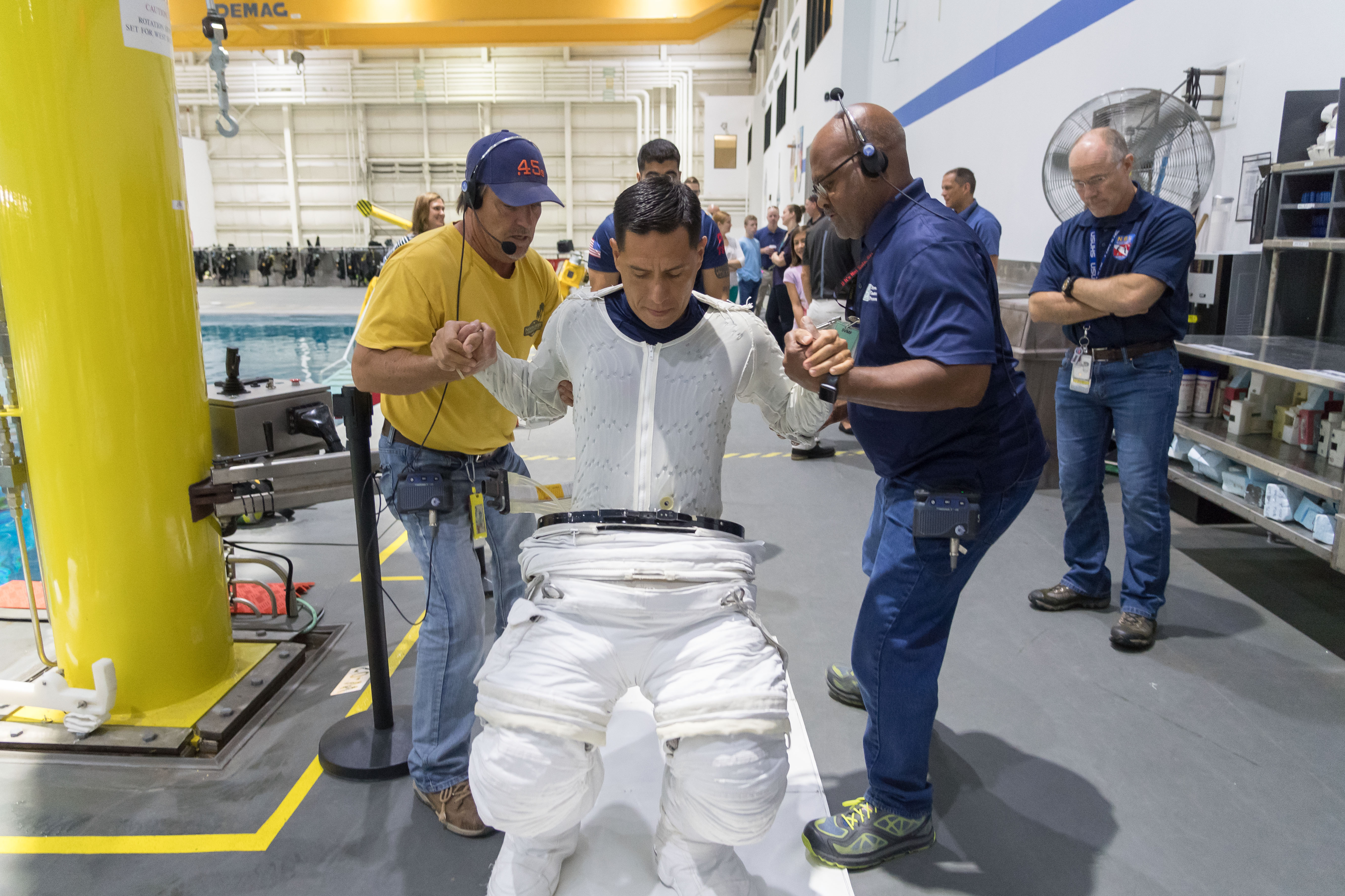 2018-07-19 - Jenni Sidey and Frank Rubio NASA astronaut train in NASA’s Neutral Buoyancy Laboratory (NBL) in Houston.