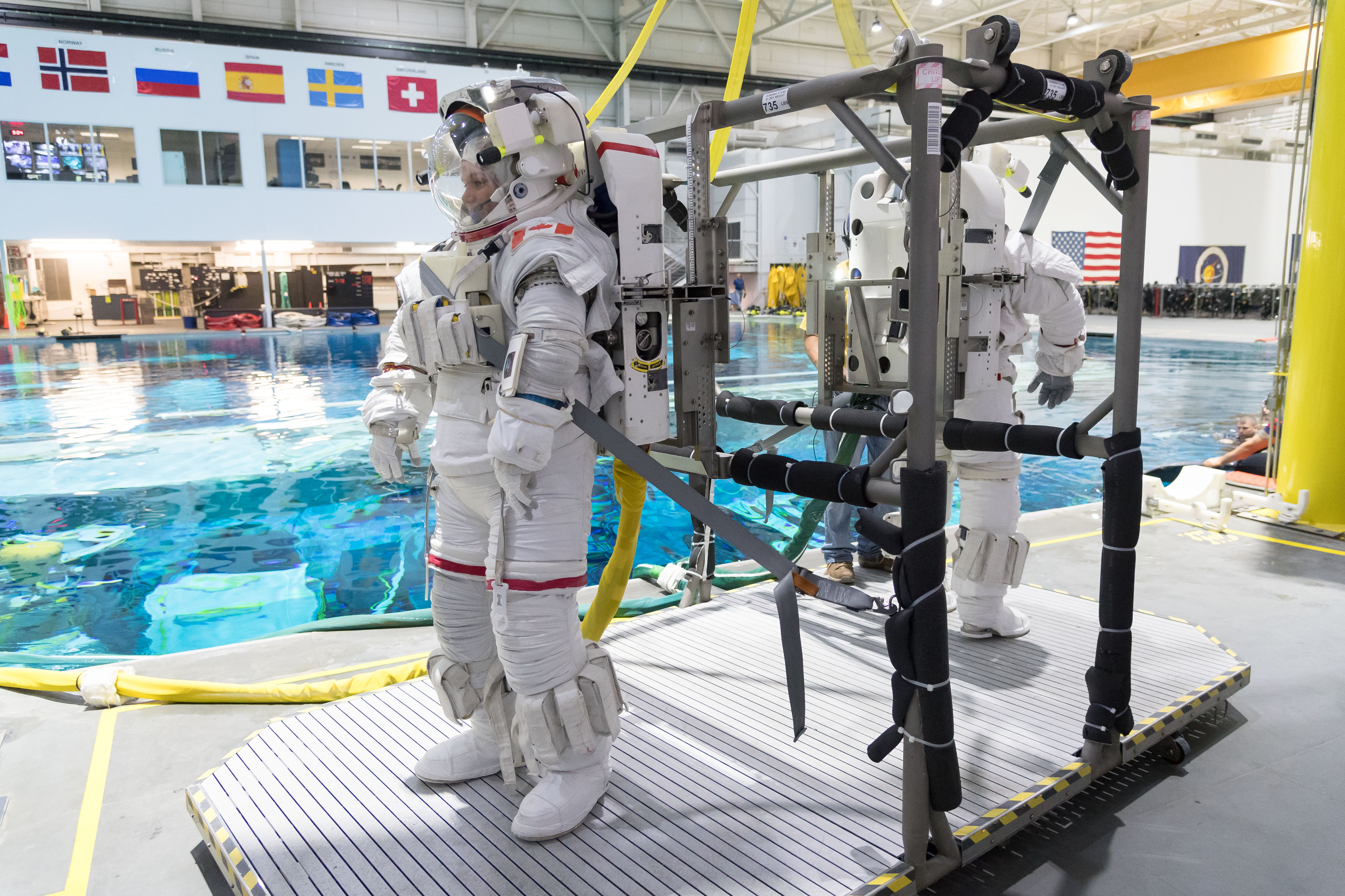2018-07-19 - Jenni Sidey and Frank Rubio NASA astronaut train in NASA’s Neutral Buoyancy Laboratory (NBL) in Houston.