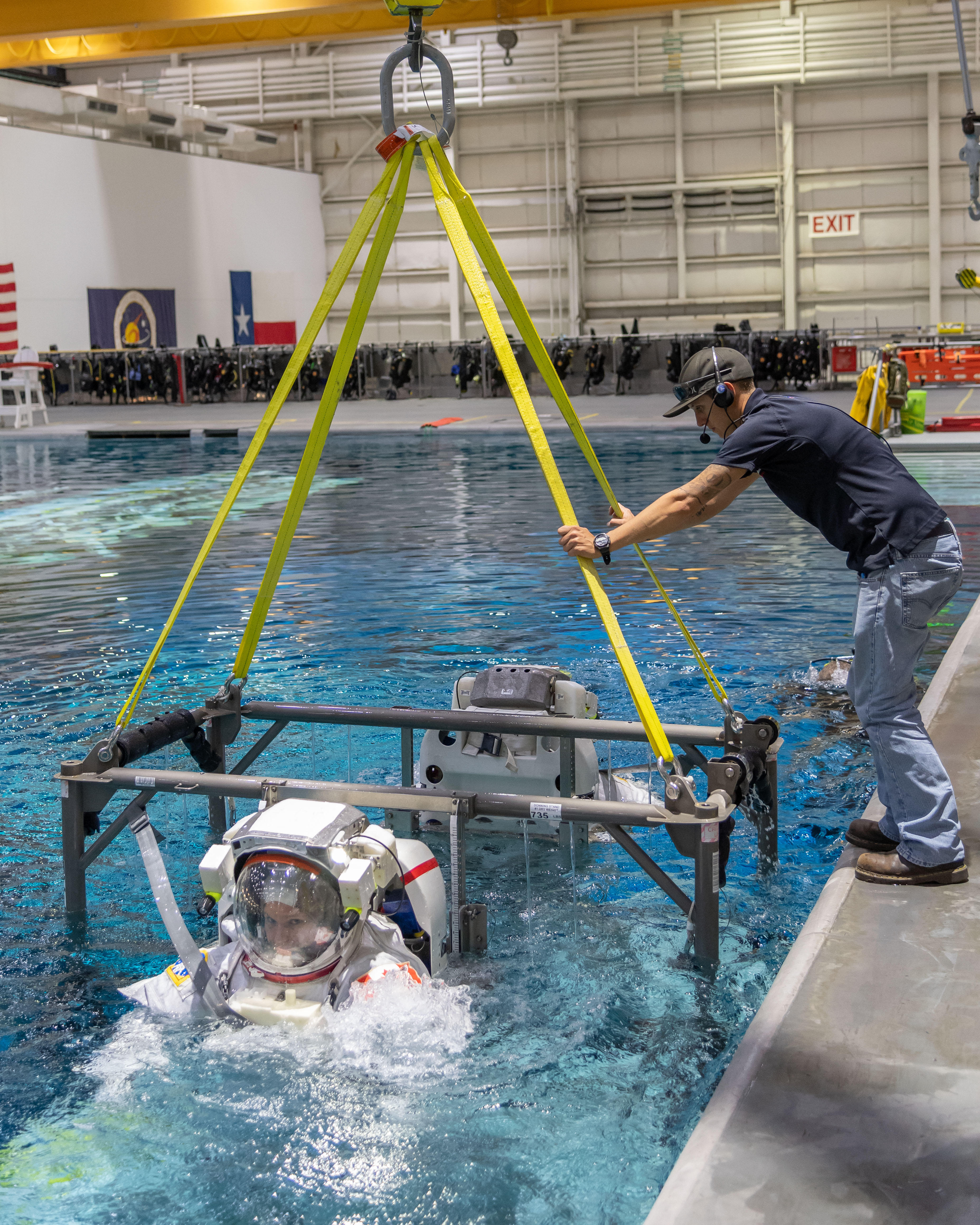 2018-07-19 - Jenni Sidey and Frank Rubio NASA astronaut train in NASA’s Neutral Buoyancy Laboratory (NBL) in Houston.
