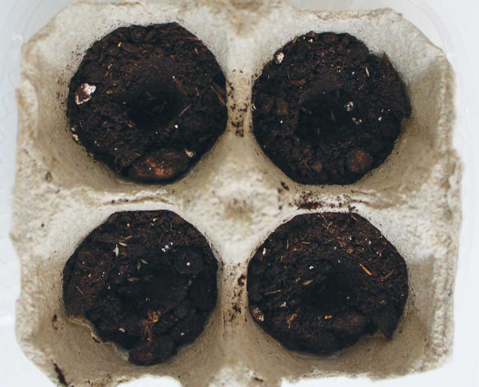 Add soil or peat pellet to each egg cup to about 2/3 full.