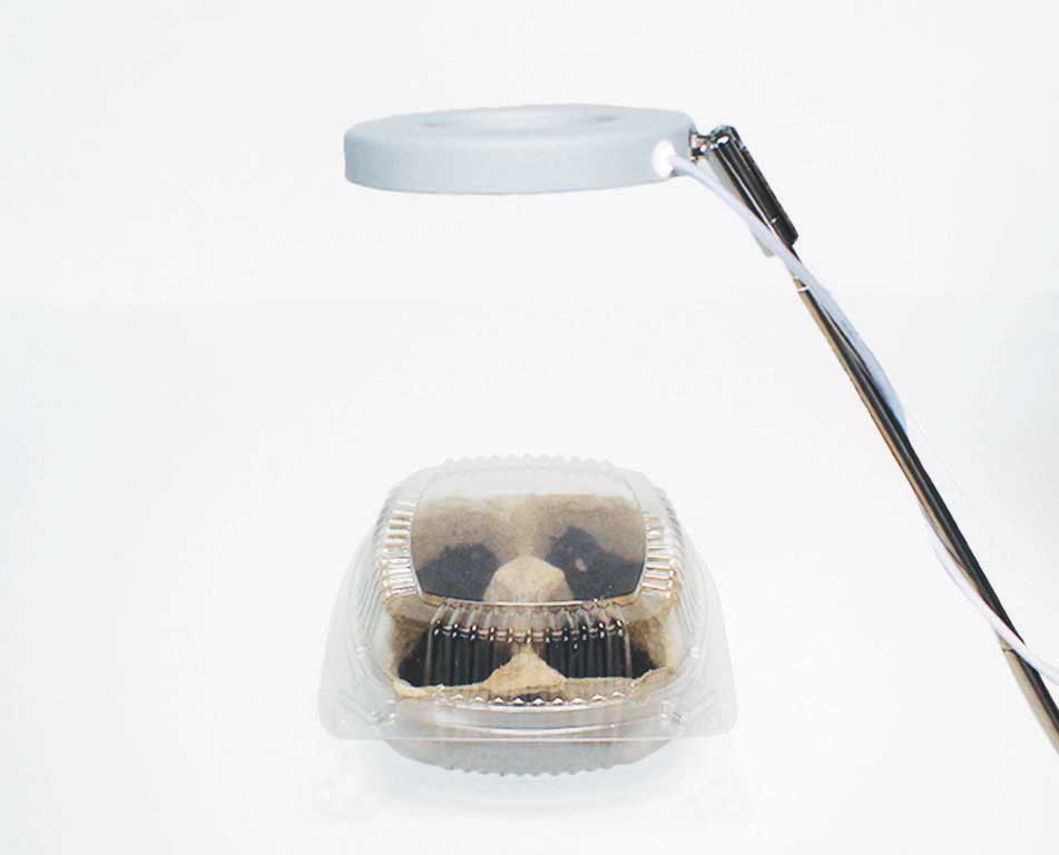 Gently moisten with water using the spray bottle or watering can and place the lid back on.
