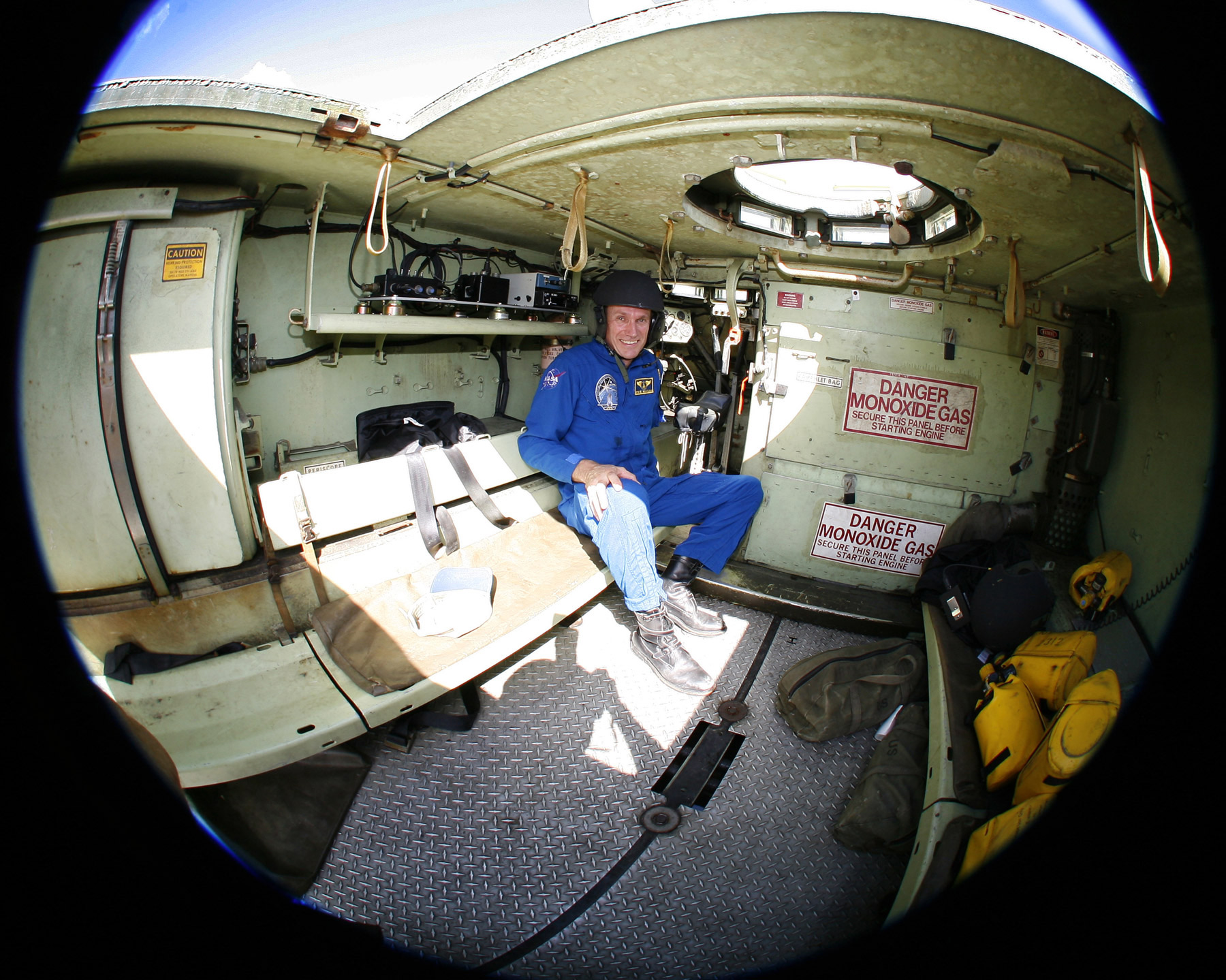 Steve MacLean se prépare à conduire le blindé M113. (Source : Agence spatiale canadienne.)