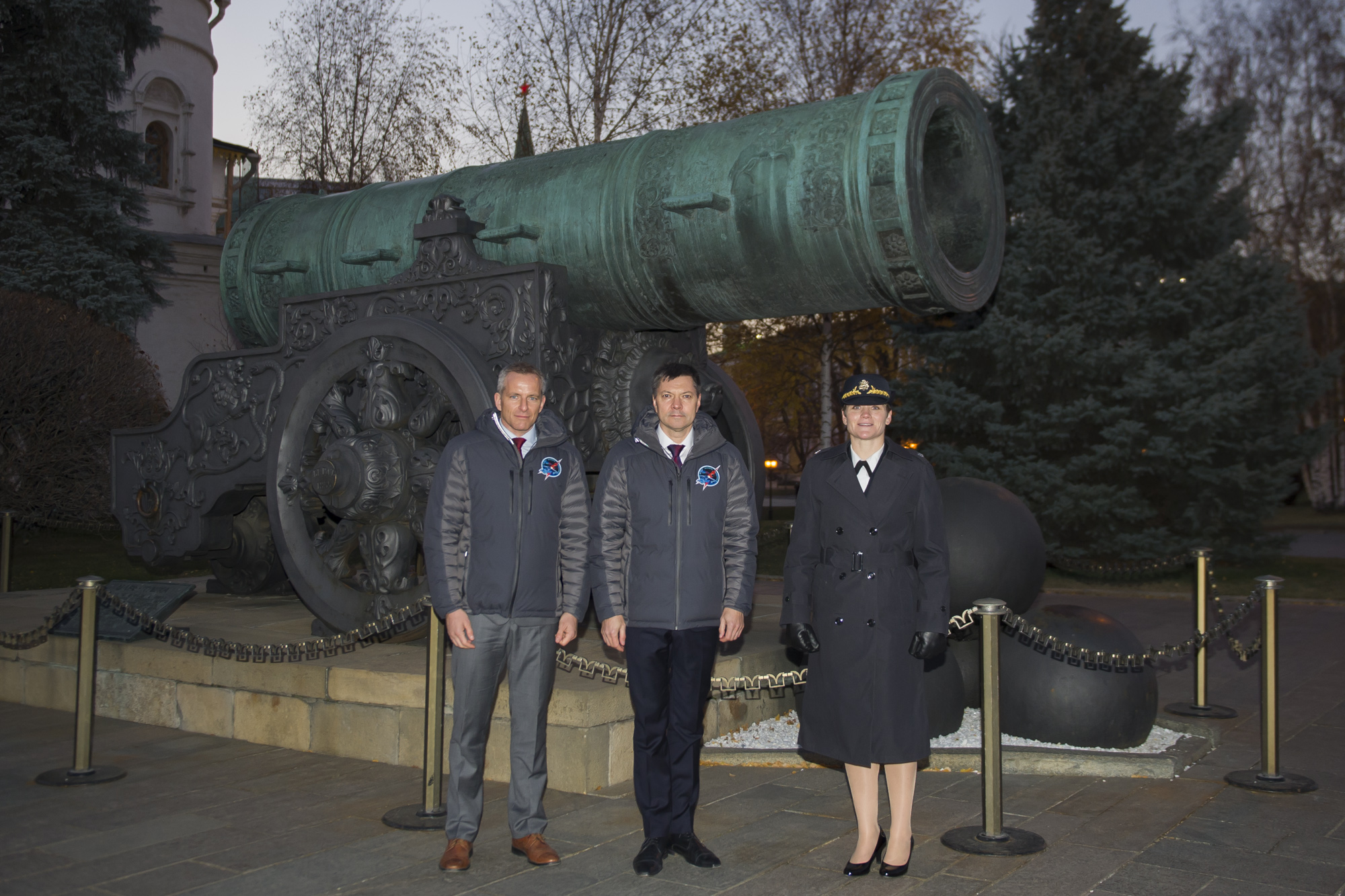Ils participent à la conférence de presse de l’équipage, visitent le musée Gagarine et la place Rouge. (Source : Centre de formation des cosmonautes Youri-Gagarine (GCTC).)