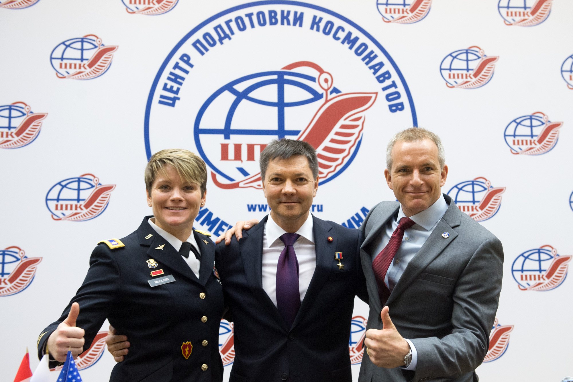 Ils participent à la conférence de presse de l’équipage, visitent le musée Gagarine et la place Rouge. (Source : Centre de formation des cosmonautes Youri-Gagarine (GCTC).)