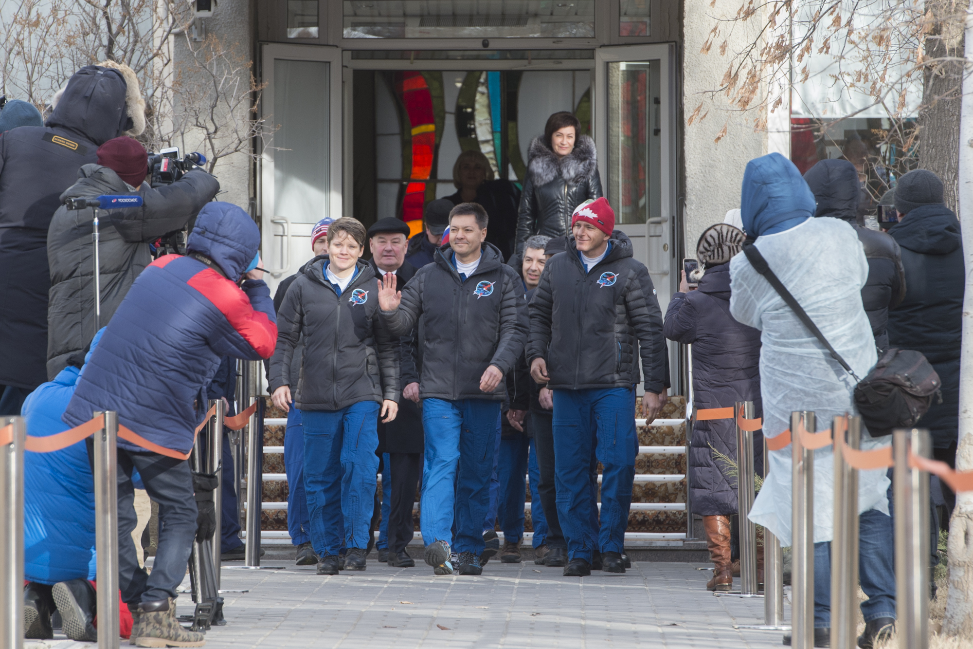 Décollage de la fusée Soyouz, avec les membres de l'équipage de la mission Expedition 58 à son bord, le 3 décembre 2018 à 6 h 31, à partir du cosmodrome de Baïkonour, au Kazakhstan. L’astronaute canadien David Saint-Jacques fait partie de l’équipage principal. (Source : NASA/Aubrey Gemignani.)