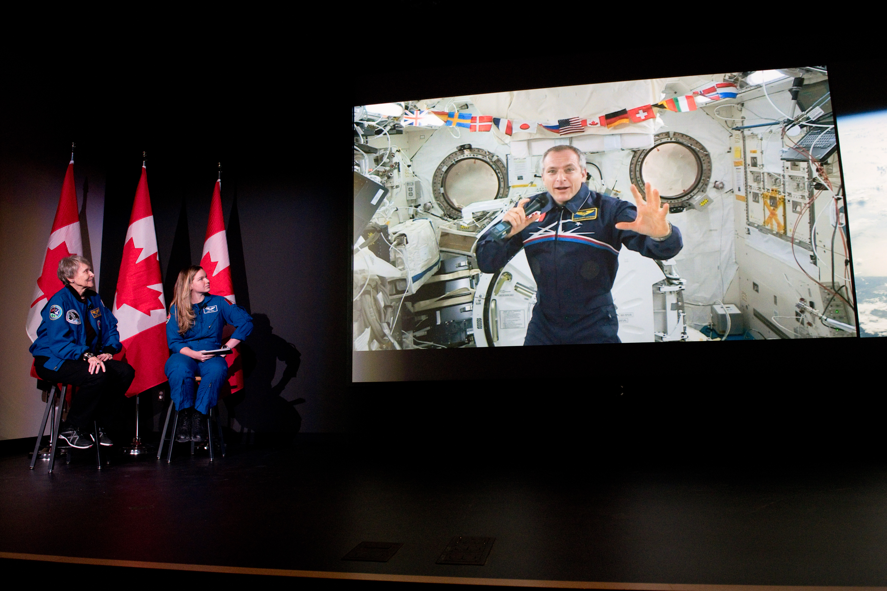 Lors d'une communication en direct avec la Terre, David Saint-Jacques a lancé « Explorer la Terre », une activité en ligne où ses photos de la Terre prises en orbite serviront à fournir des explications scientifiques sur le fonctionnement de la Terre. (Source : Agence spatiale canadienne.)