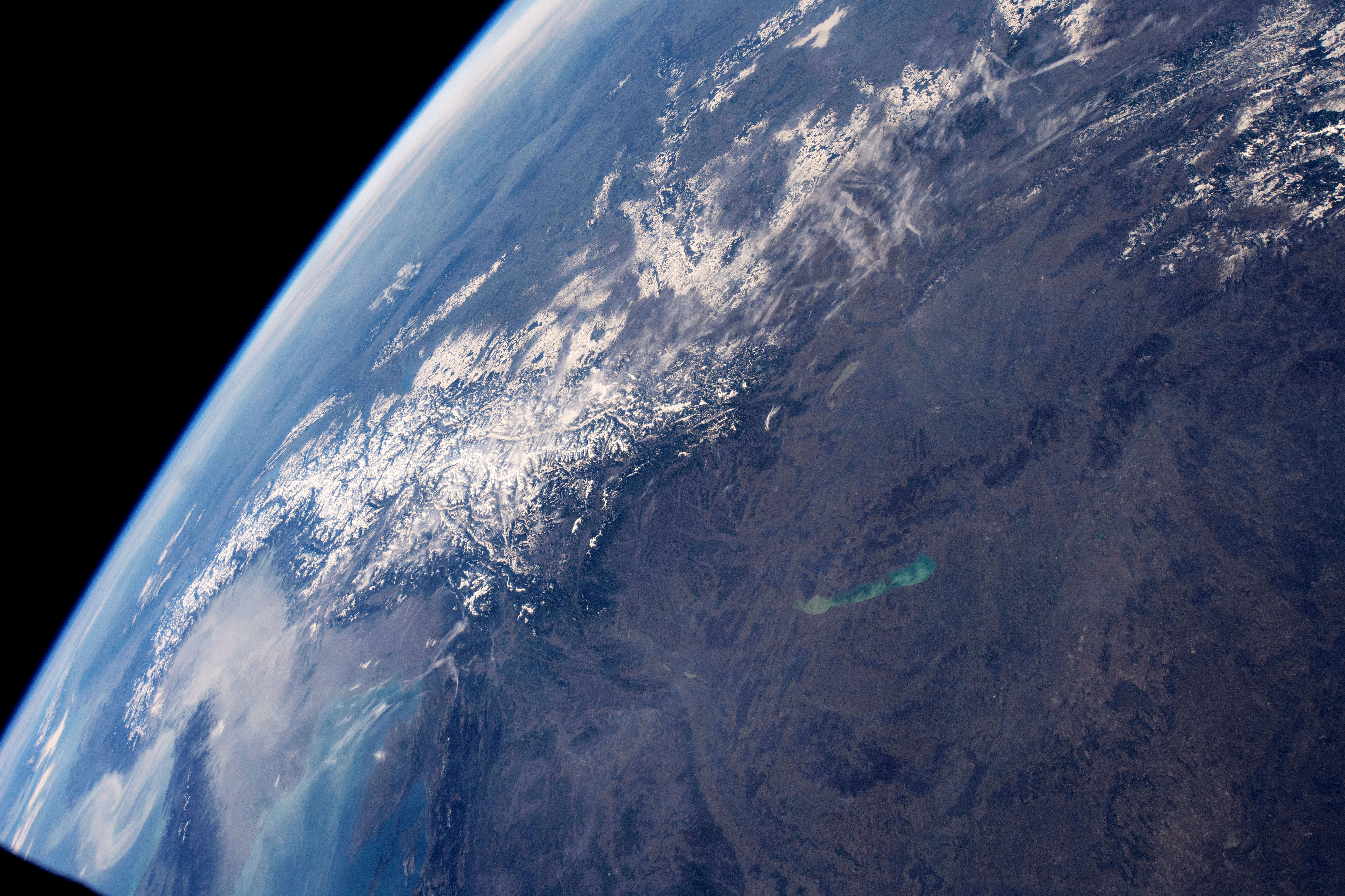 2019-02-16 - Photo des Alpes et du lac Balaton, en Hongrie, prise par David Saint-Jacques pendant sa mission spatiale. (Source : ASC/NASA.)