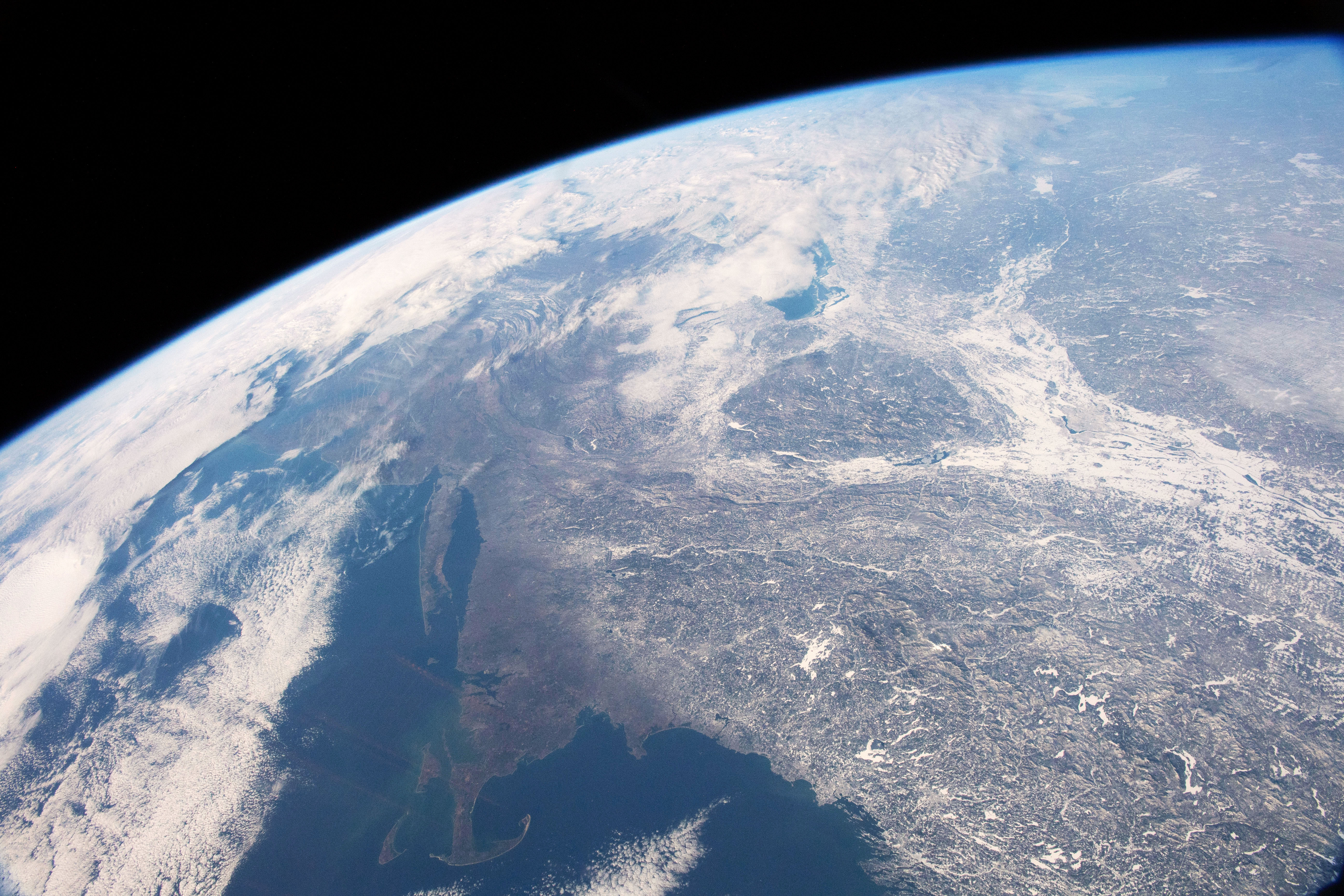 2019-02-17 - Photo des villes de Montréal, Boston et New York prise par David Saint-Jacques pendant sa mission spatiale. (Source : ASC/NASA.)