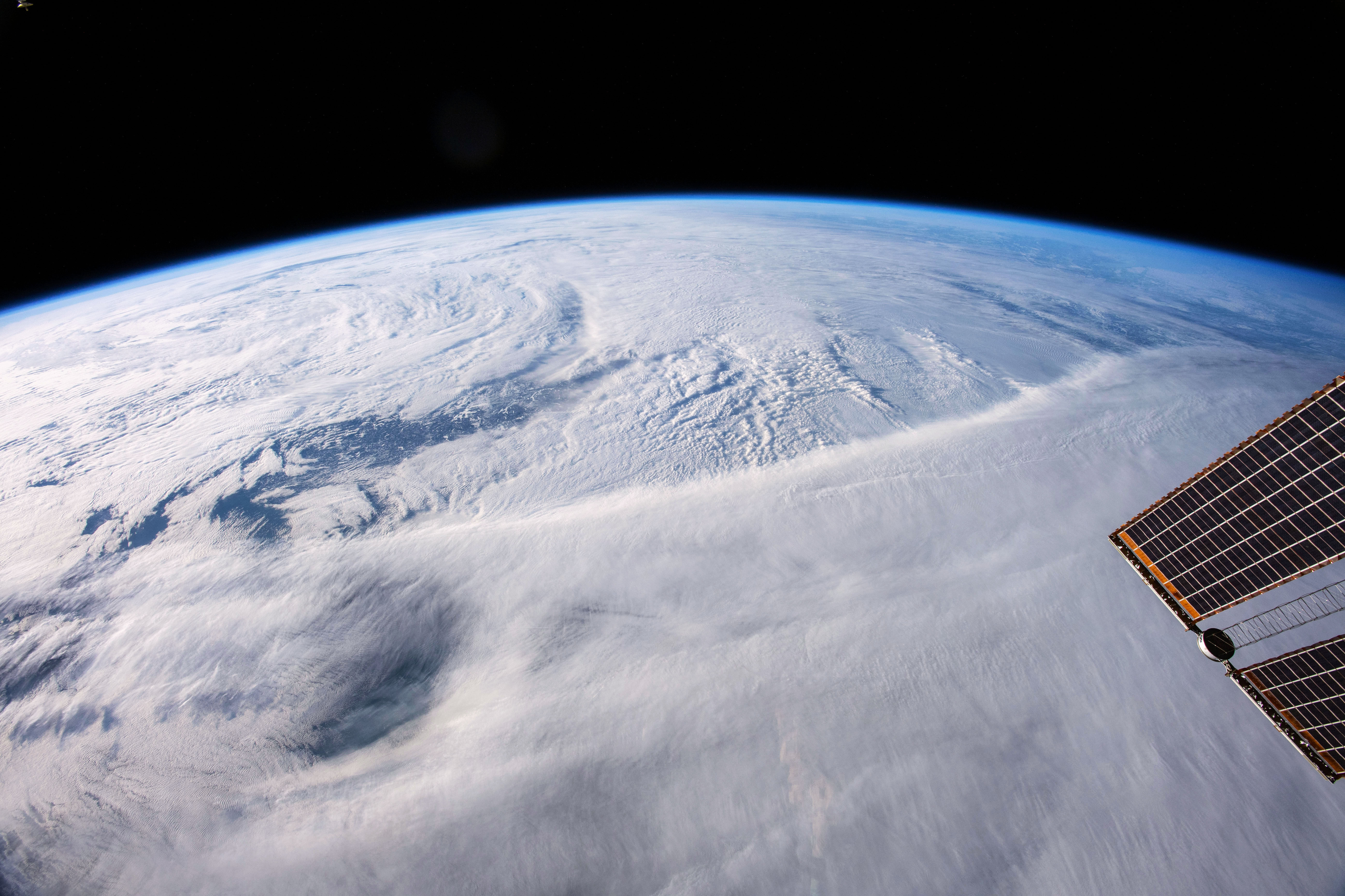 2019-02-13 - Photo de la tempête de neige au-dessus du Canada, prise par David Saint-Jacques pendant sa mission spatiale. (Source : ASC/NASA.)
