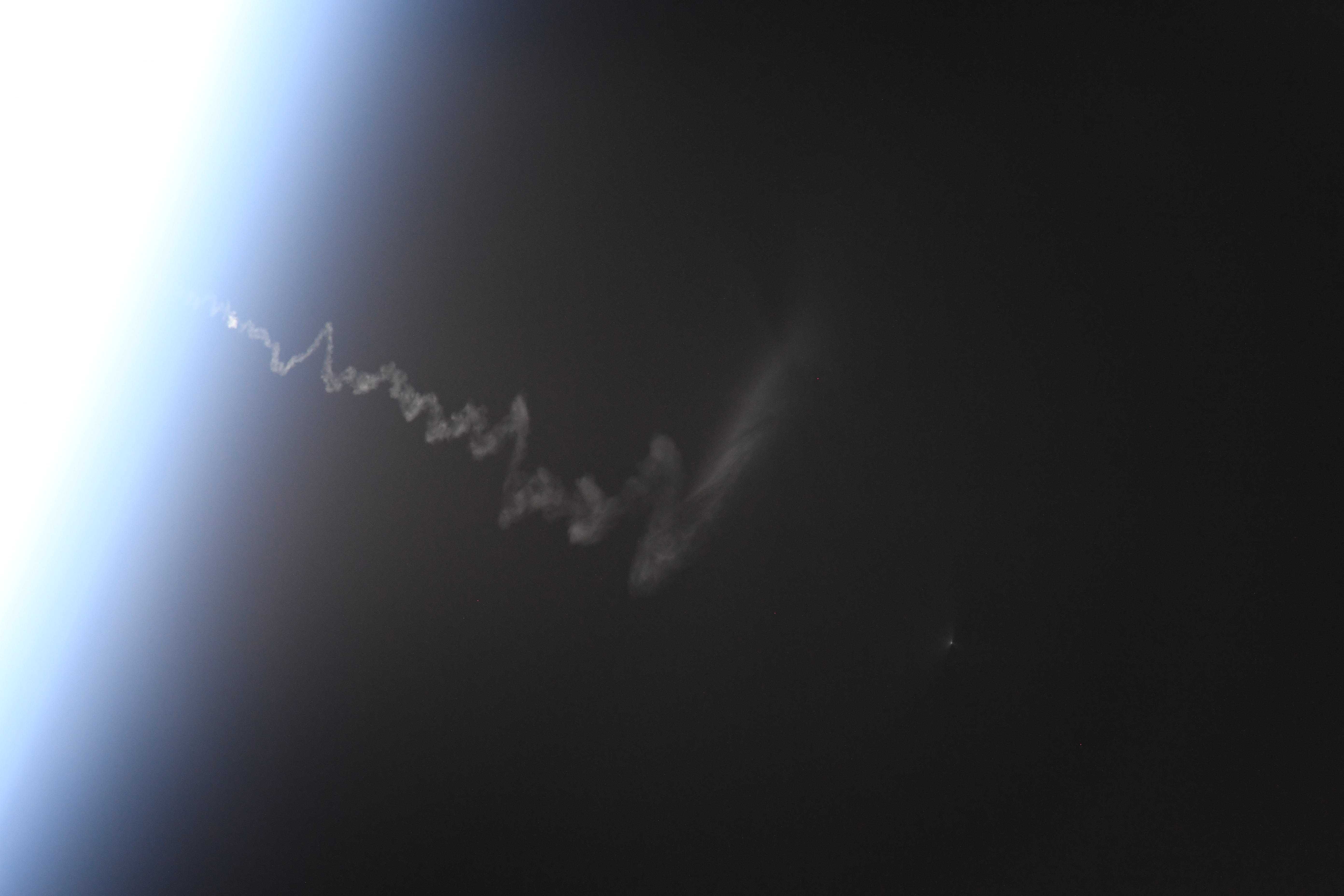 2019-04-04 - L’astronaute de l’ASC David Saint-Jacques dans les médias sociaux : Du ravitaillement est en route! Ce vaisseau-cargo Progress vient de décoller du cosmodrome de Baïkonour. Il s’agit également d’un vol d’essai pour un amarrage qui aura lieu 3 heures seulement après le lancement. On se croise les doigts! (Source : ASC/NASA.)