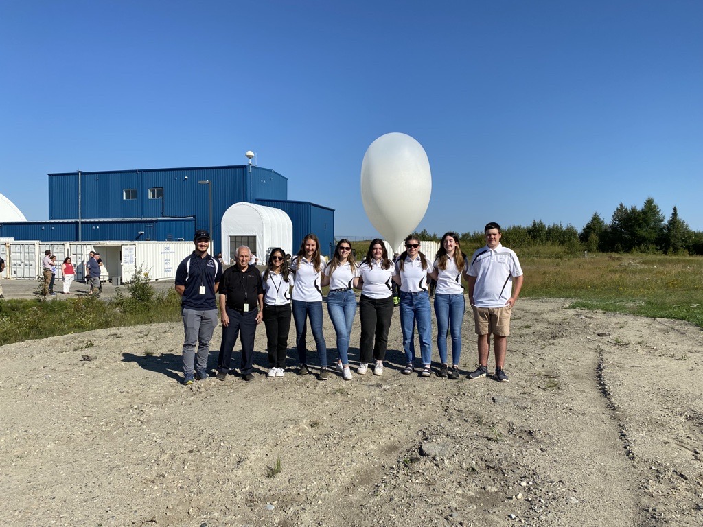 2022-08-18 - Des jeunes d’écoles secondaires de la région de Timmins participent à la campagne STRATOS 2022 et posent devant leur ballon. (Source : Agence spatiale canadienne.)