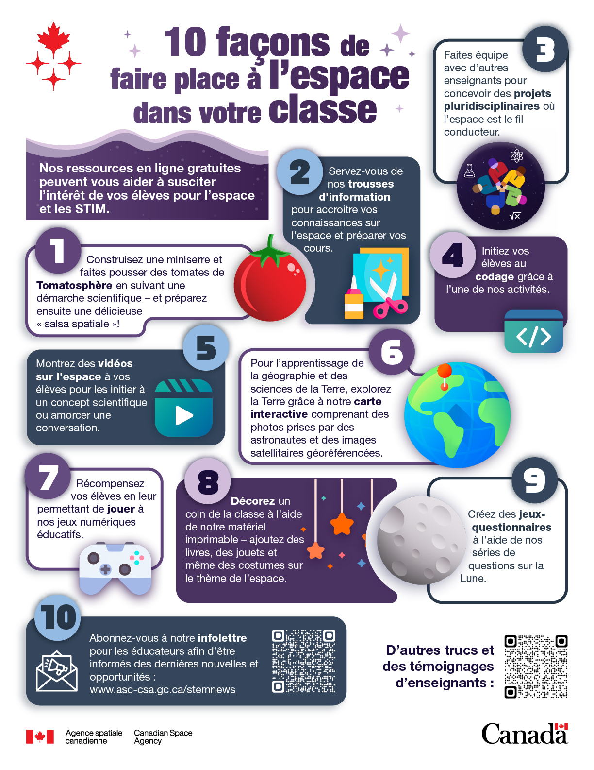 - Servez-vous de nos trousses d'information pour accroitre vos connaissances sur l'espace et préparer vos cours.