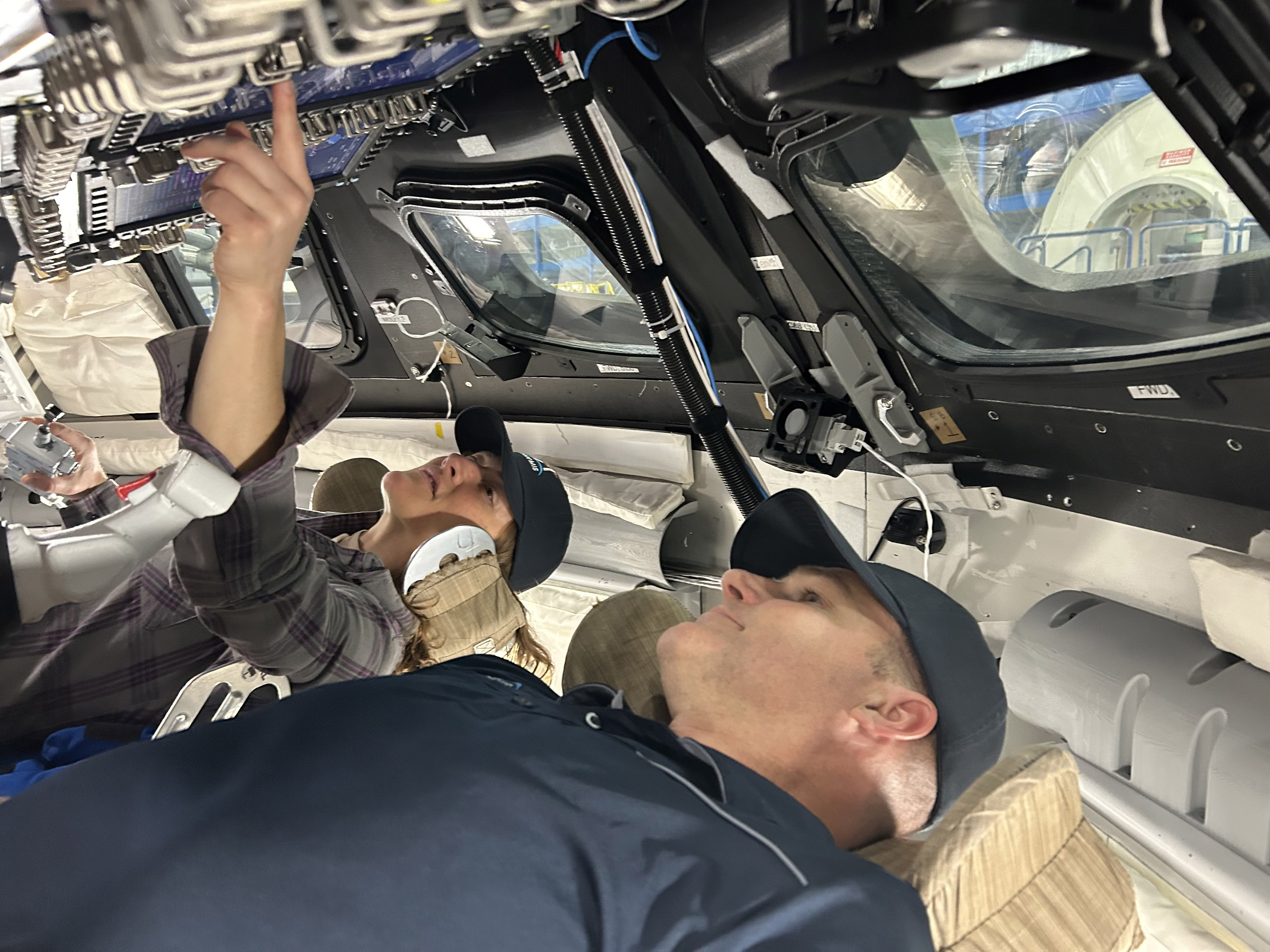 L'équipage s'est exercé à configurer le vaisseau spatial Orion une fois en orbite, à le rendre habitable et à revêtir sa combinaison pressurisée d'entrée pour se préparer à son retour de la Lune. (Source : NASA/Mark Sowa.)