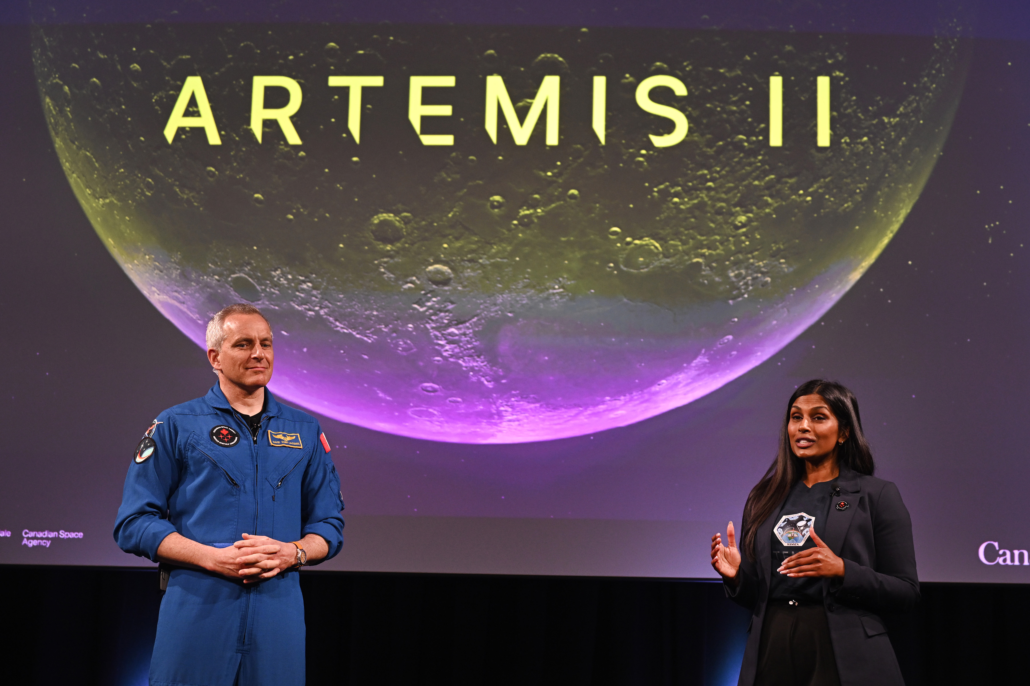L'astronaute David Saint-Jacques et Kumi Jinadasa animent l'évènement de lancement de la mission Artemis II à l'Agence spatiale canadienne