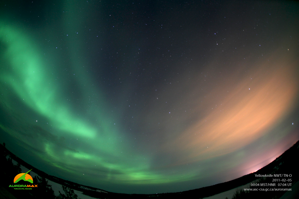 2011-02-05 - Image d’une aurore boréale prise au-dessus de Yellowknife, T.N-O. (Sources : Agence spatiale canadienne, Université de Calgary, Astronomy North.)