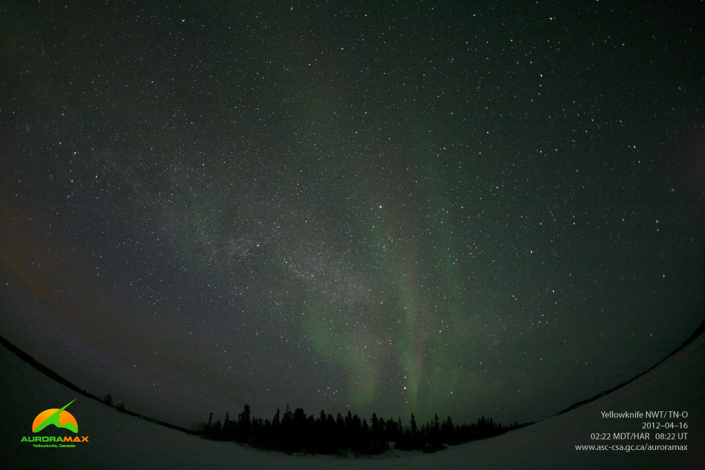2012-04-16 - Image d’une aurore boréale prise au-dessus de Yellowknife, T.N-O. (Sources : Agence spatiale canadienne, Université de Calgary, Astronomy North.)